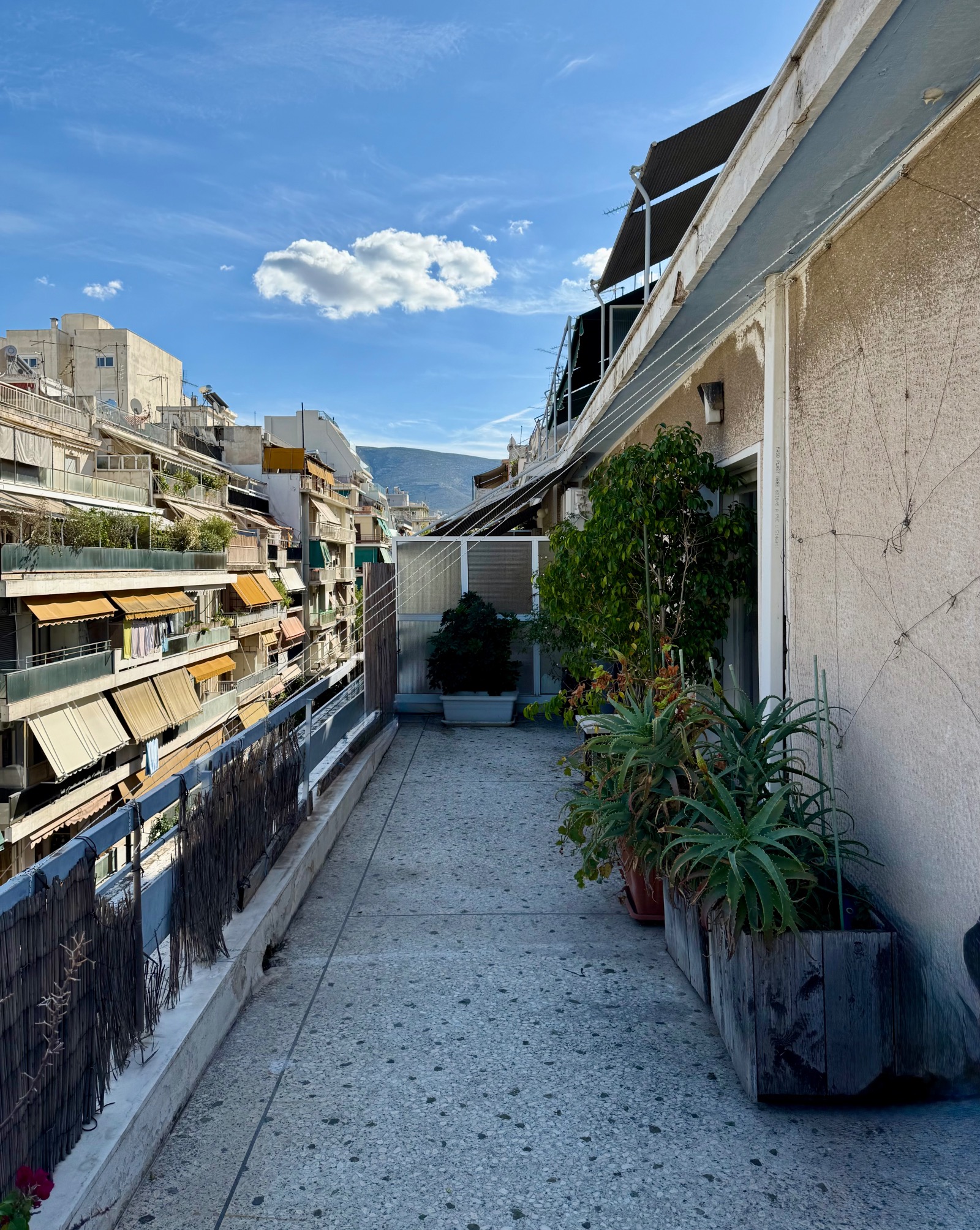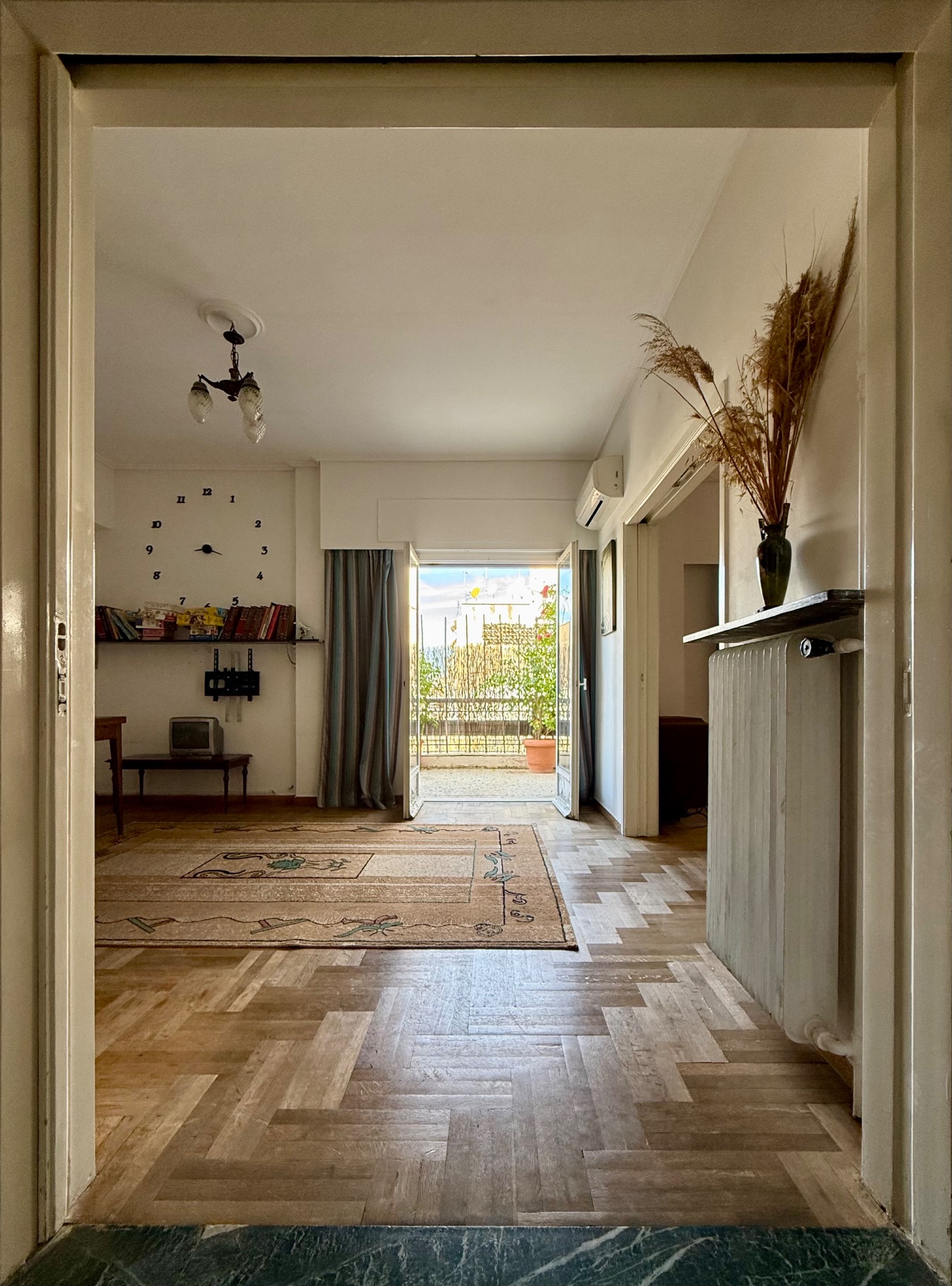 Στην καρδιά του Παγκρατίου βρίσκεται αυτό το δεύτερο ρετιρέ (101τμ) τετάρτου ορόφου γωνιακής πολυκατοικίας του 1968.