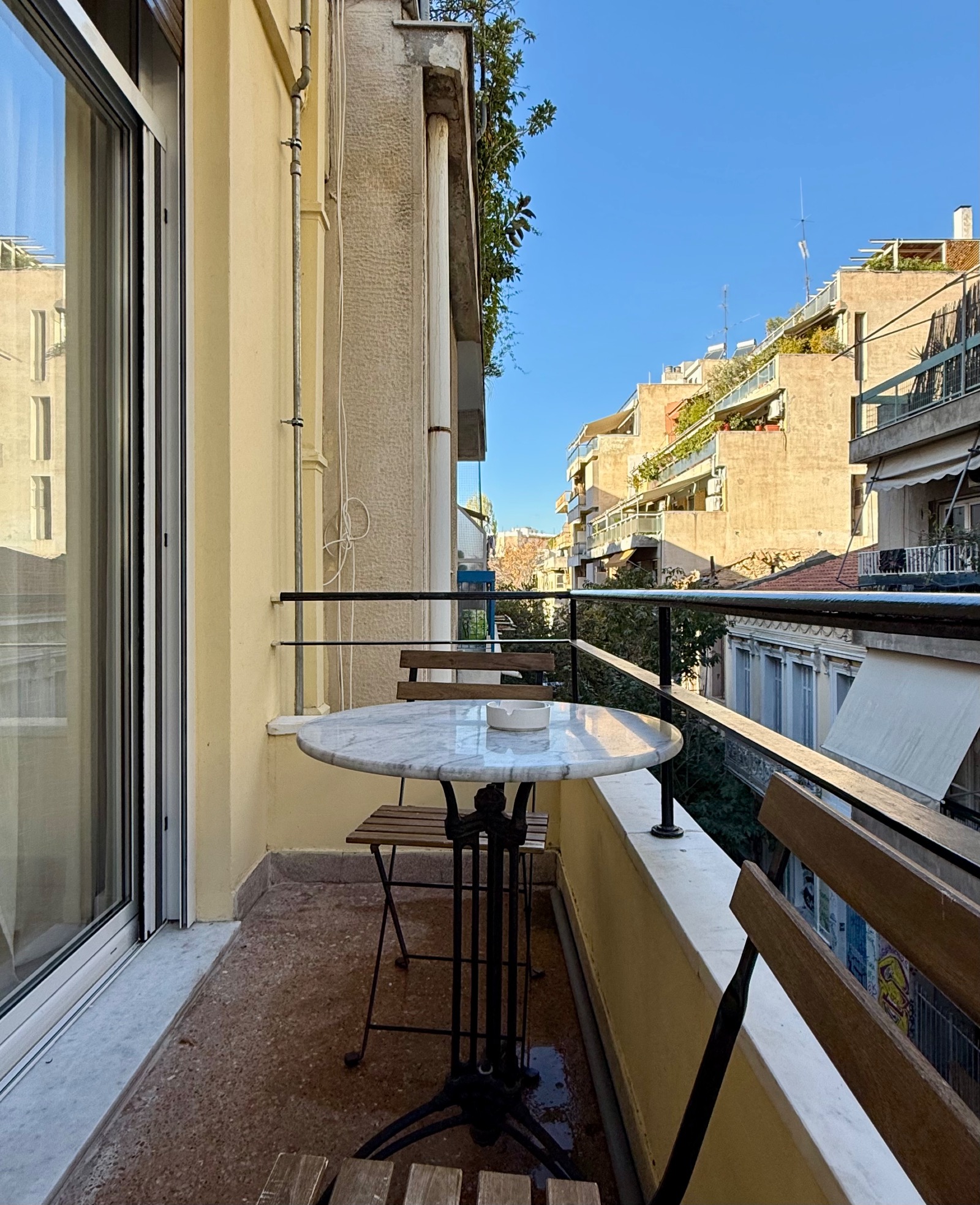 Στον δεύτερο όροφο καλοδιατηρημένου κτηρίου του 1935, με χαρακτηριστικά πρώιμου μοντερνισμού, βρίσκονται δύο ανεξάρτητα και πλήρως ανακαινισμένα διαμερίσματα, τοποθετημένα σε έναν από τους πιο ήσυχους πεζόδρομους των Εξαρχείων. Η ιδιαίτερη αρχιτεκτονική του κτηρίου, σε συνδυασμό με τον χαμηλό θόρυβο της περιοχής, δημιουργούν ένα περιβάλλον κατοίκησης ξεχωριστού χαρακτήρα.