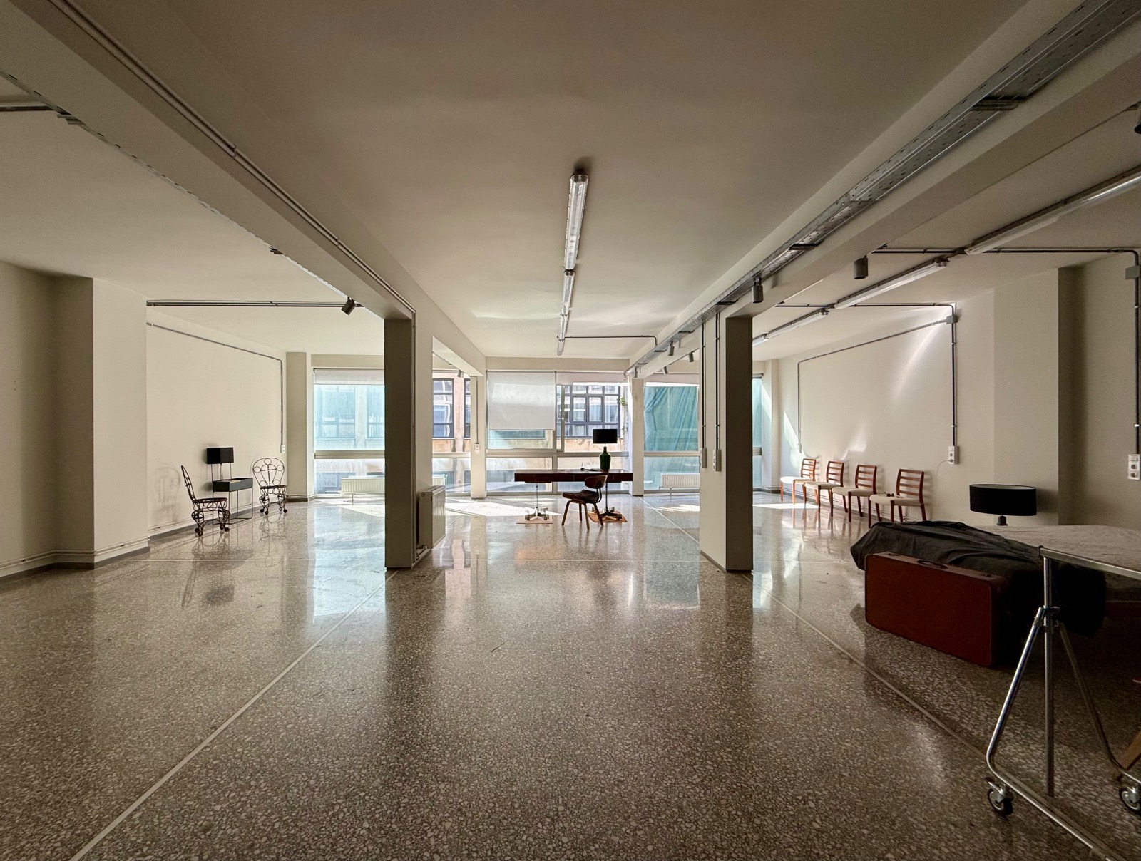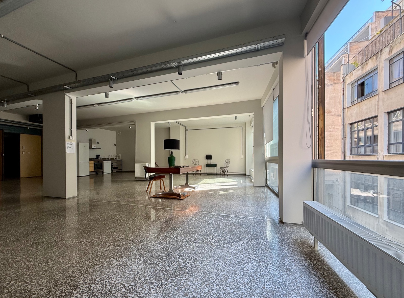 Located in the vibrant Psirri district, known for its multicultural character, this second-floor loft appeals to those who embrace authentic urban living. Original terrazzo flooring runs throughout the space, while large warehouse-style windows enhance its distinctive industrial aesthetic.