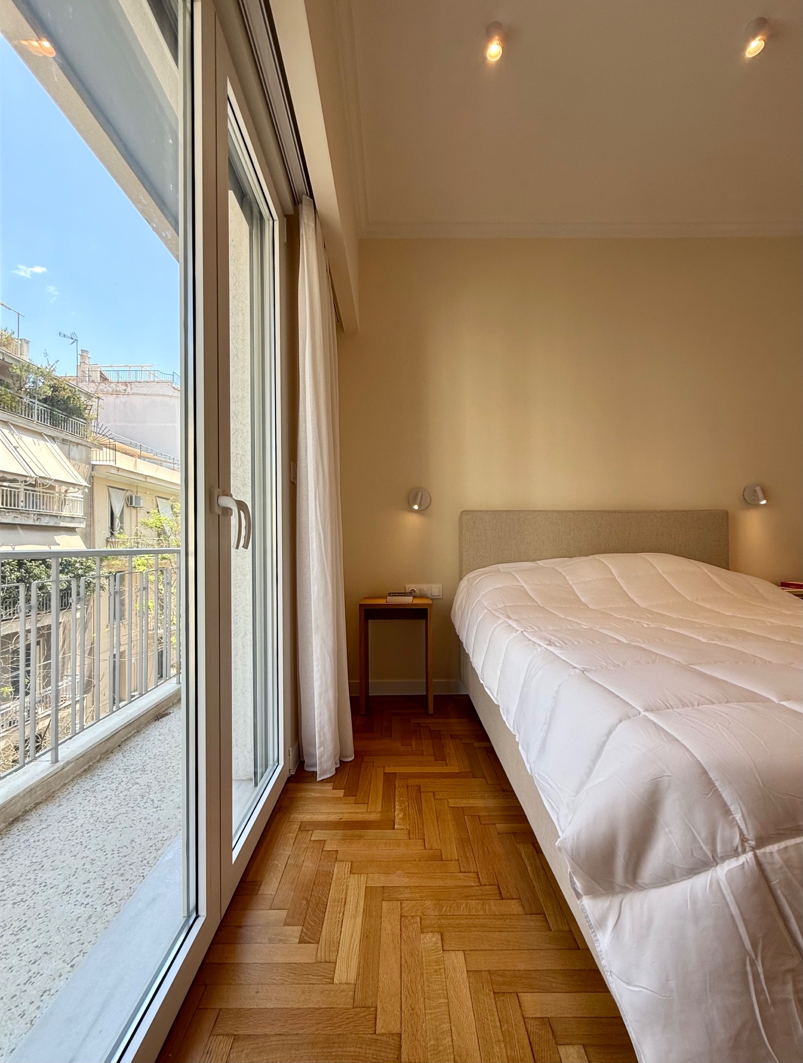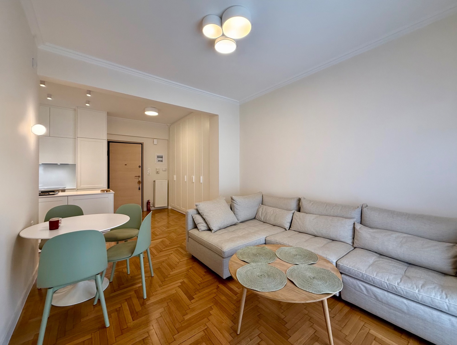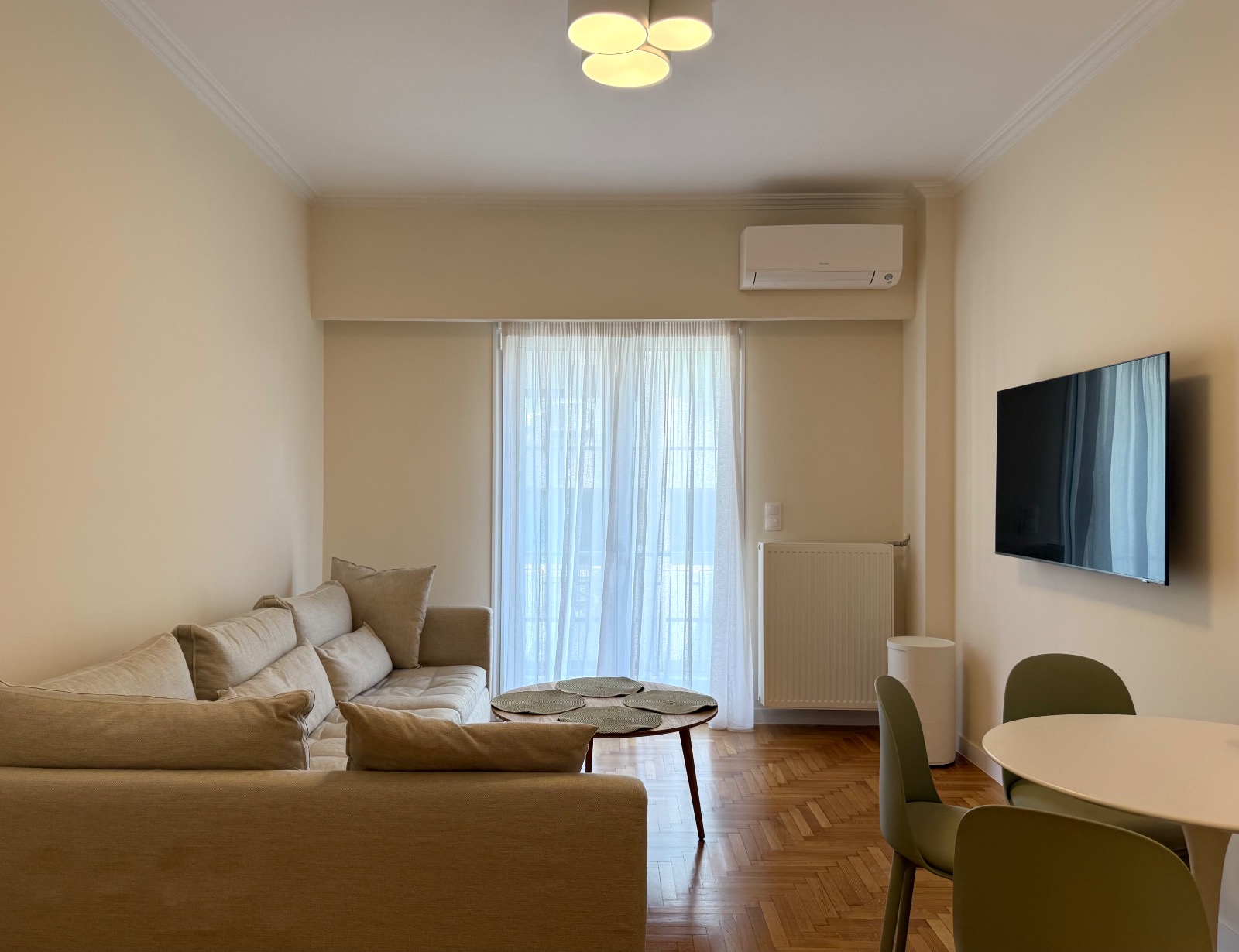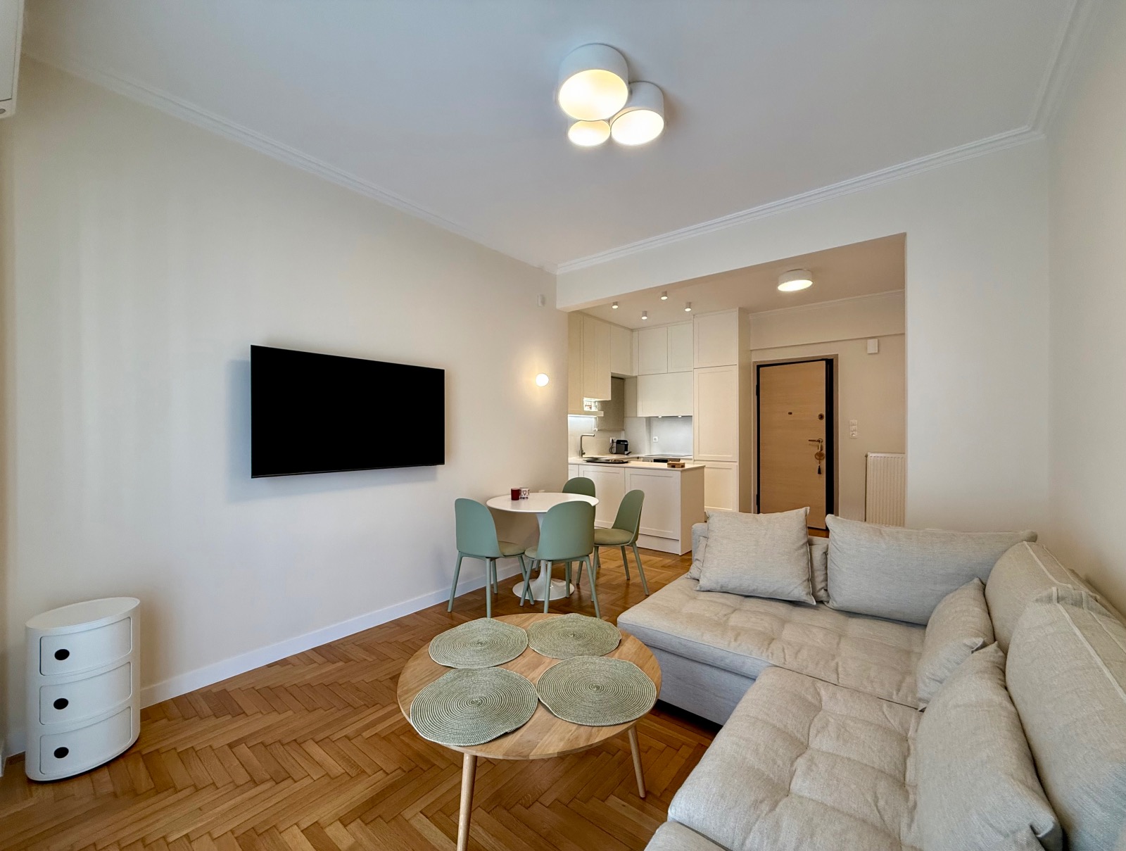 Σε προνομιακή τοποθεσία, πλησίον του Γαλλικού Ινστιτούτου, αυτό το κομψό διαμέρισμα 50 τ.μ. βρίσκεται στον 3ο όροφο και είναι πλήρως ανακαινισμένο με υλικά υψηλής ποιότητας και αισθητικής.
