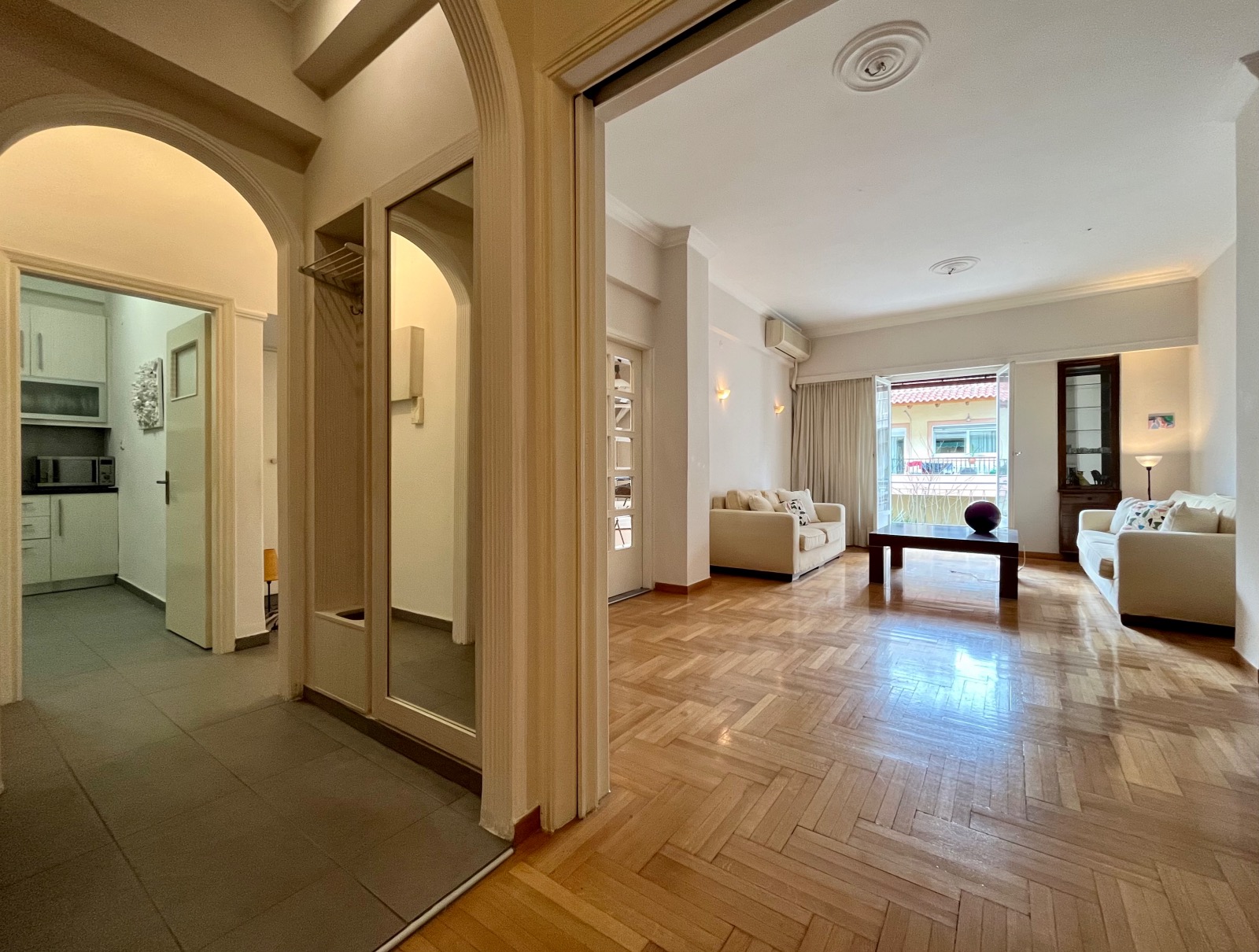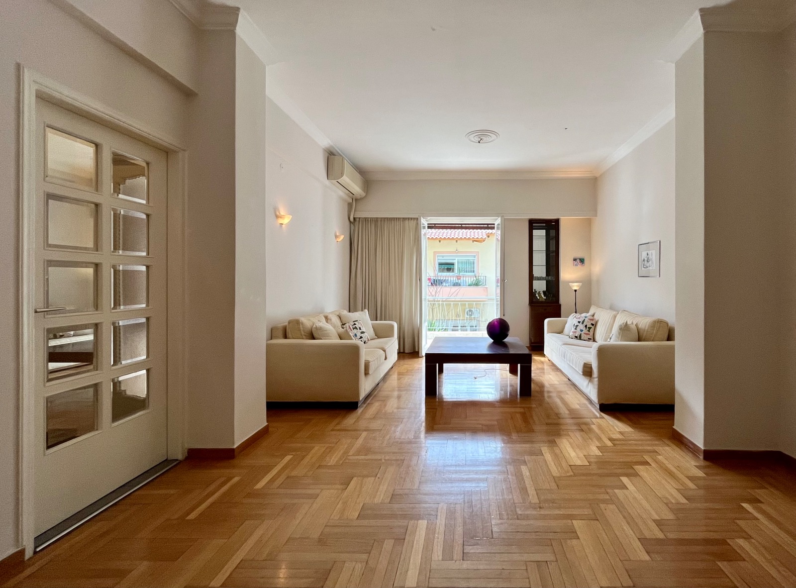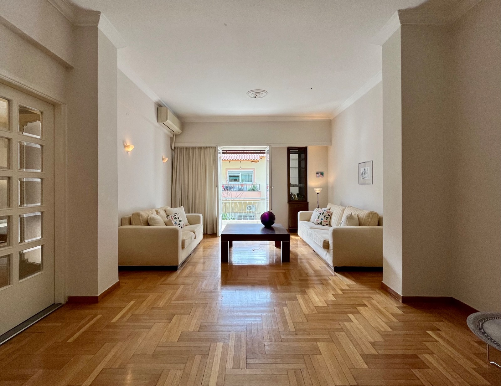 Τα χαμηλού ύψους κτίρια που βρίσκονται απεναντί του βοηθούν να μπαίνει άπλετο φυσικό φως σε όλους τους χώρους του διαμερίσματος.