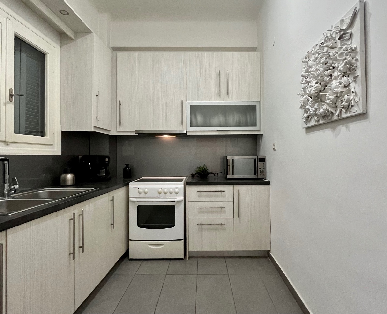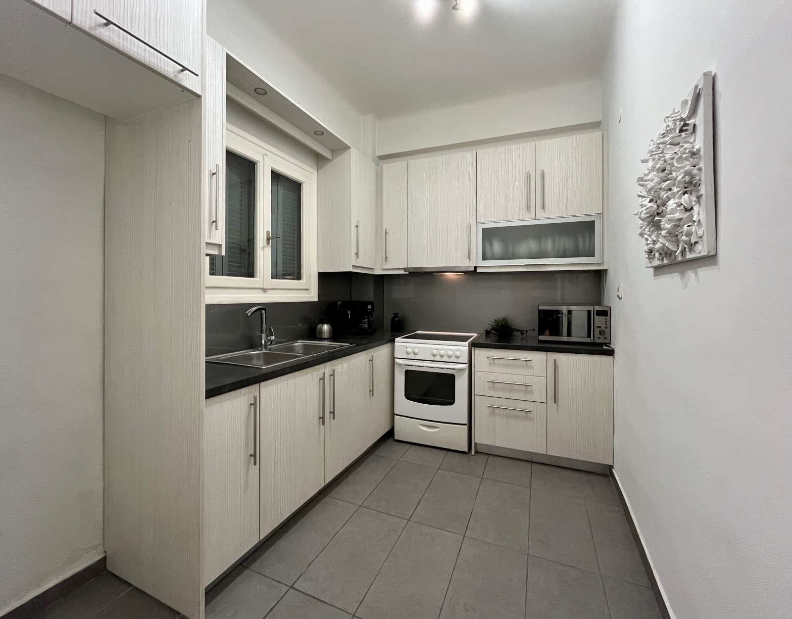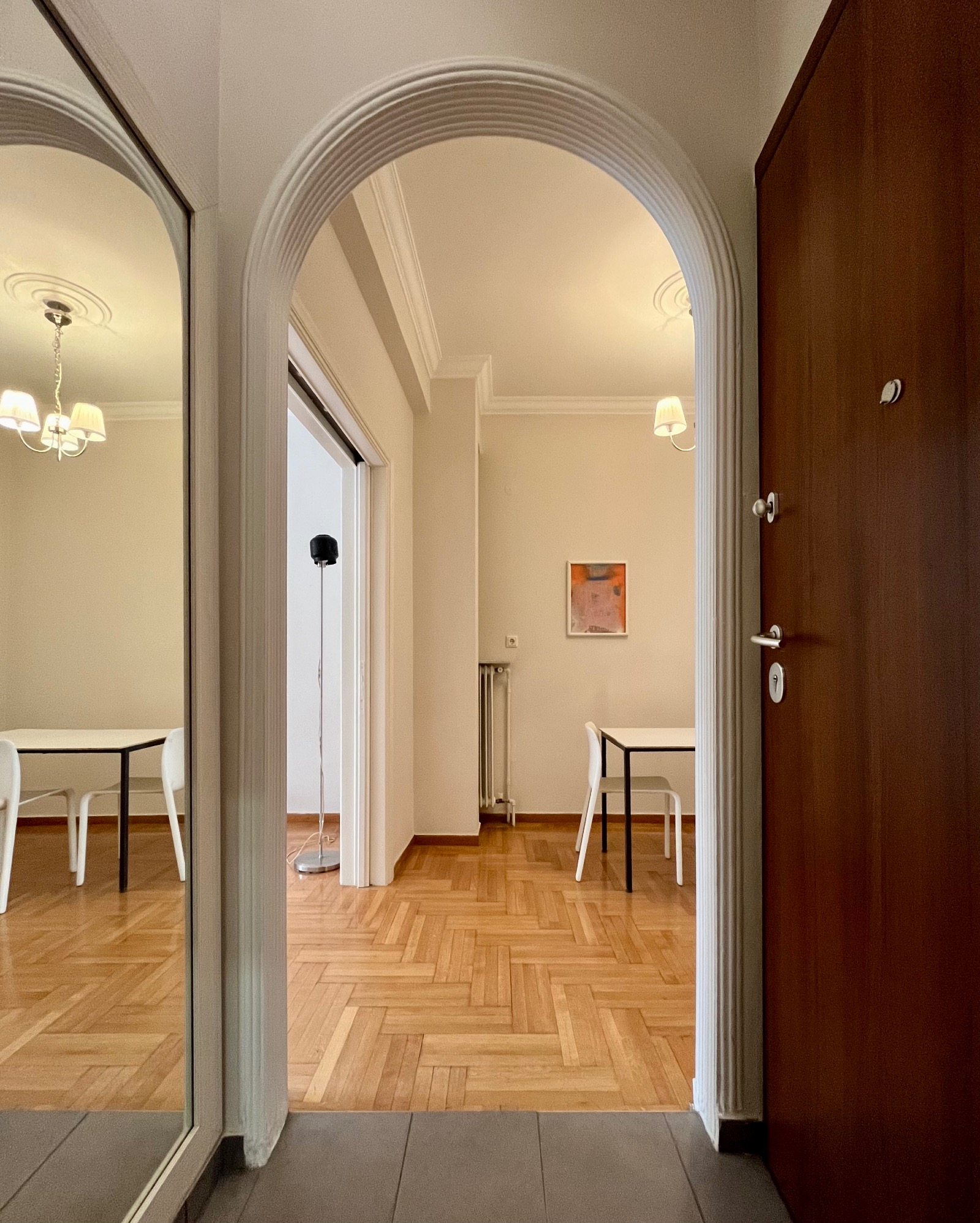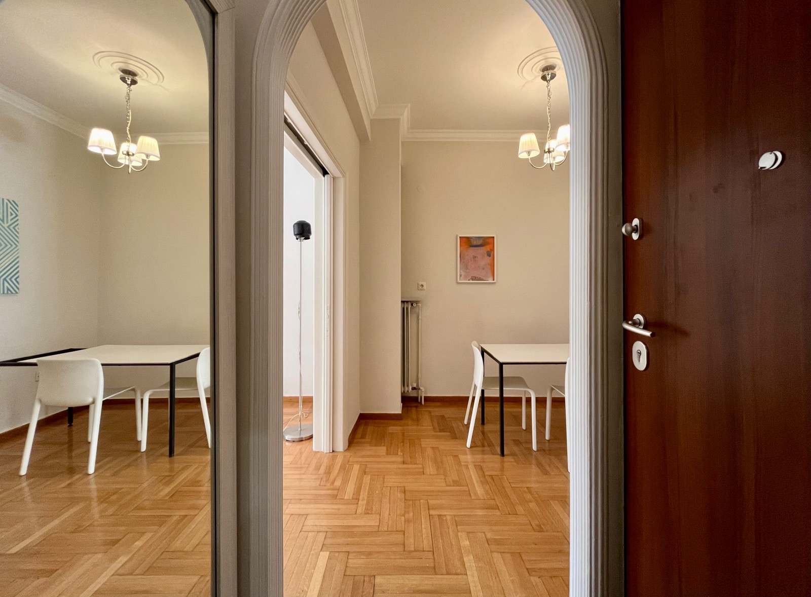 Τα χαμηλού ύψους κτίρια που βρίσκονται απεναντί του βοηθούν να μπαίνει άπλετο φυσικό φως σε όλους τους χώρους του διαμερίσματος.
