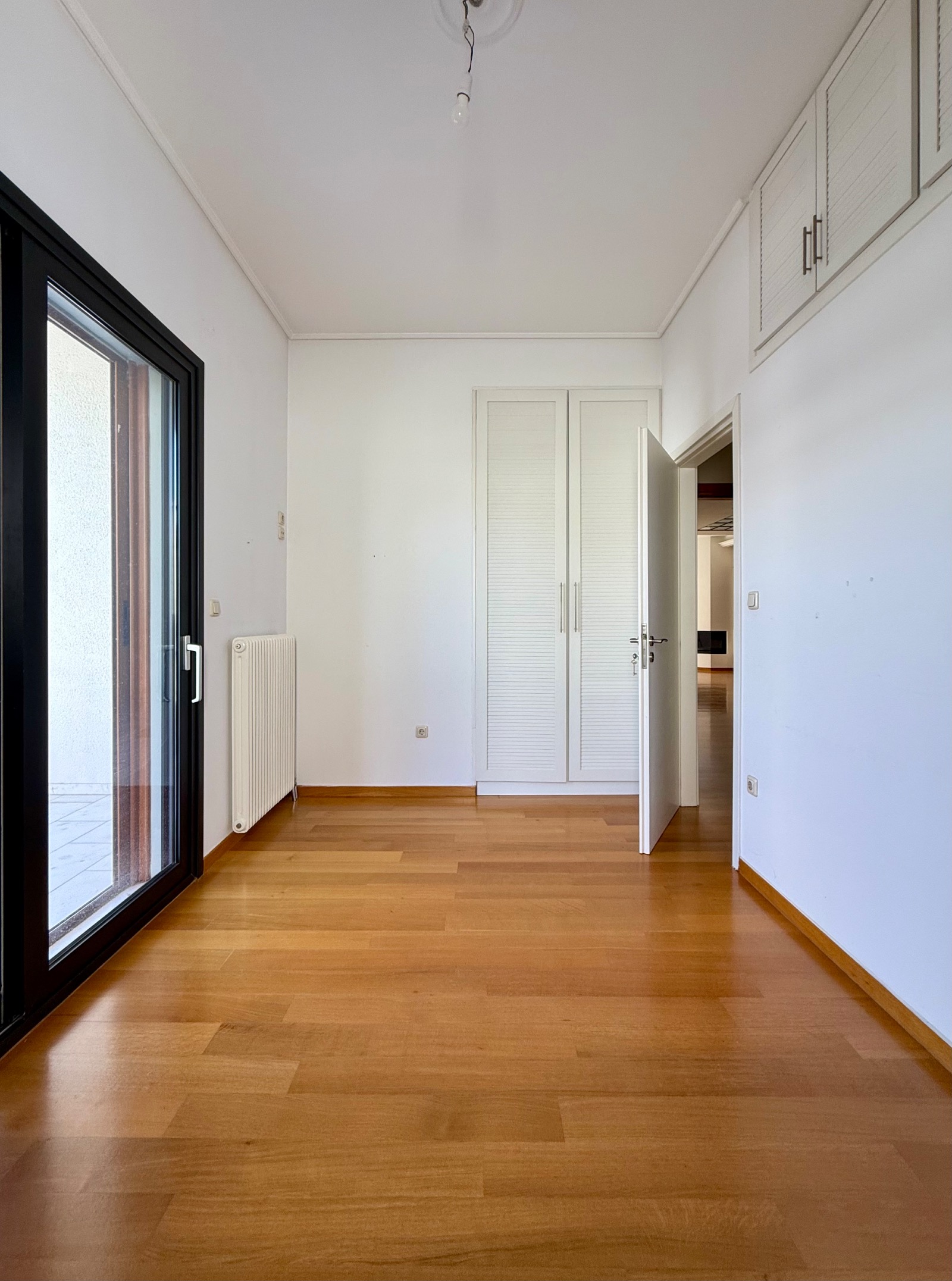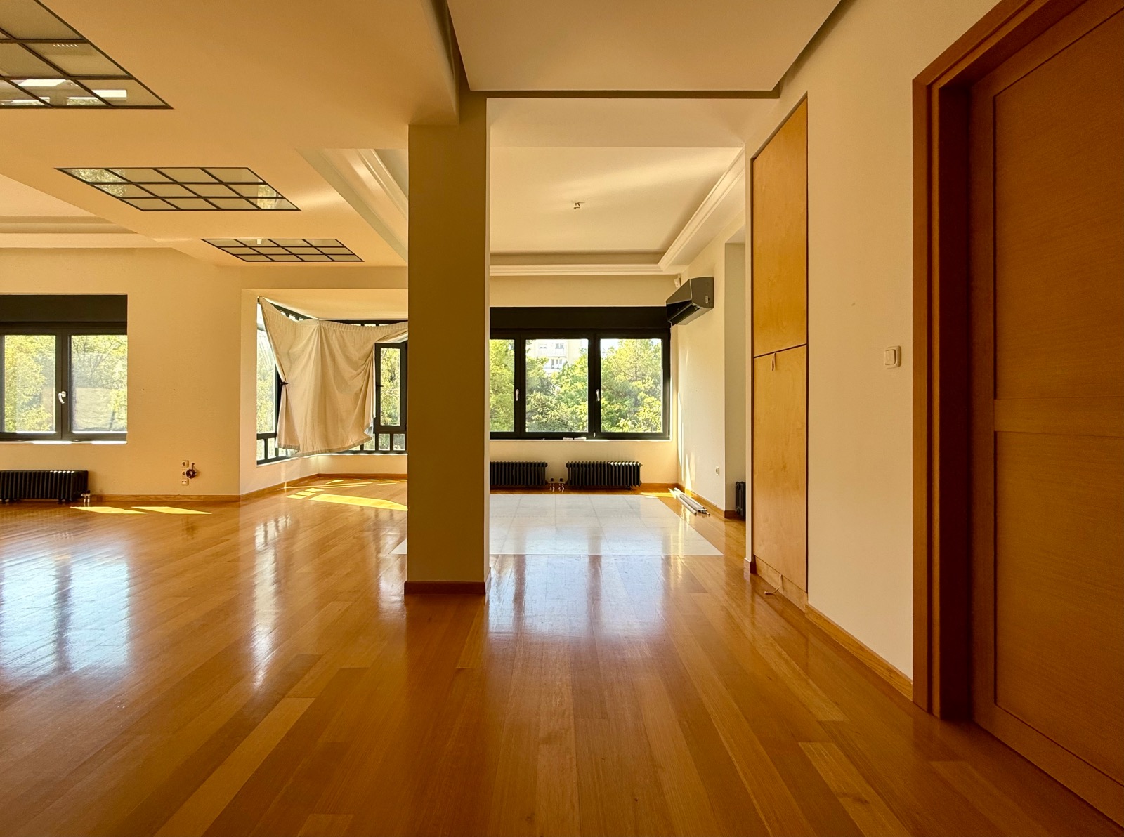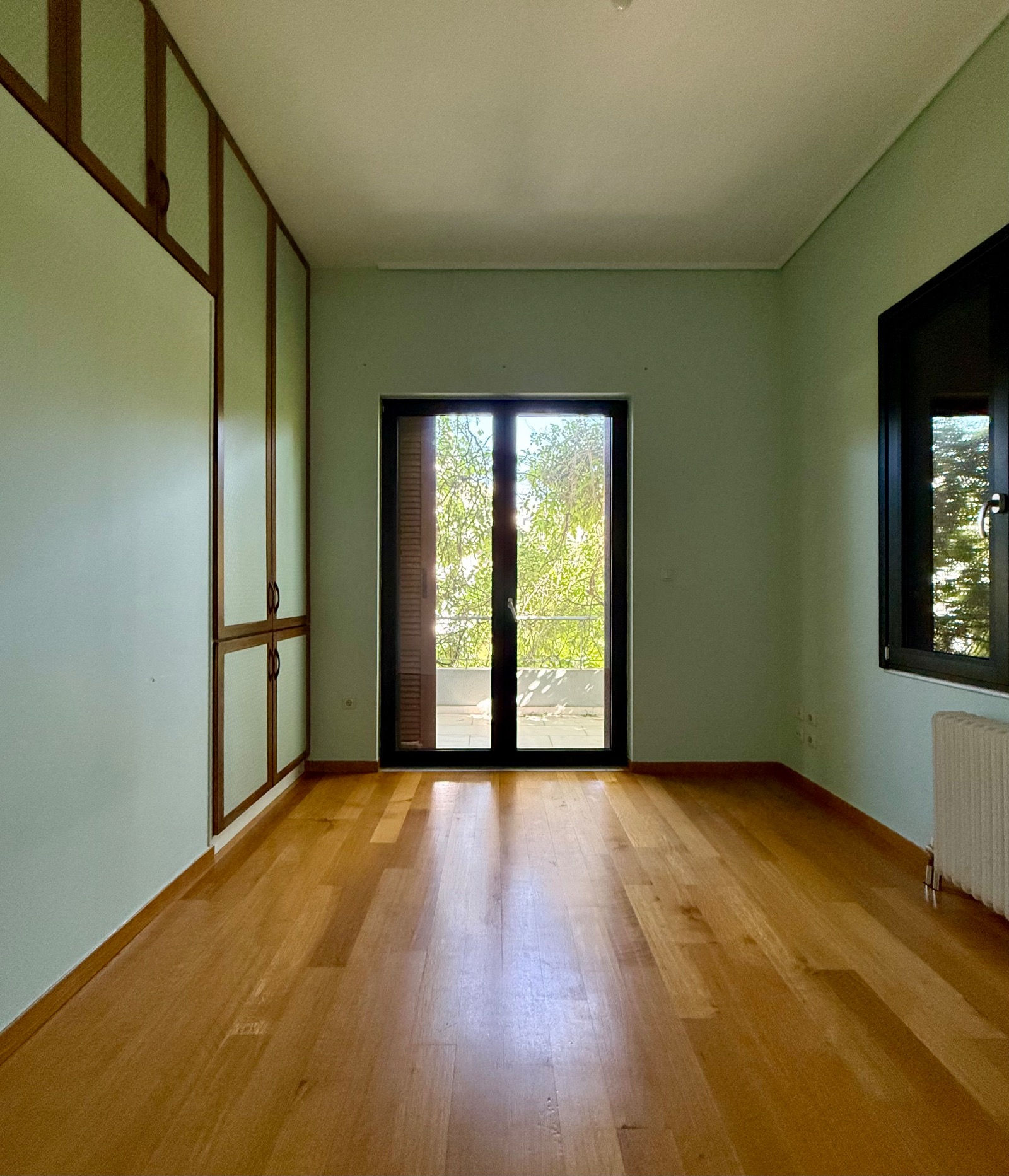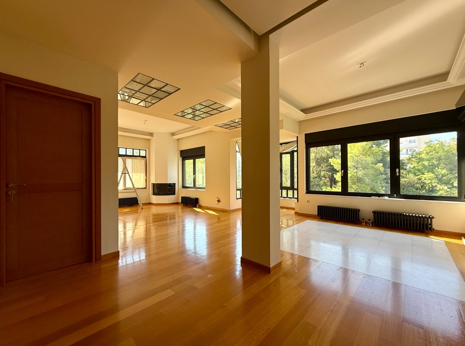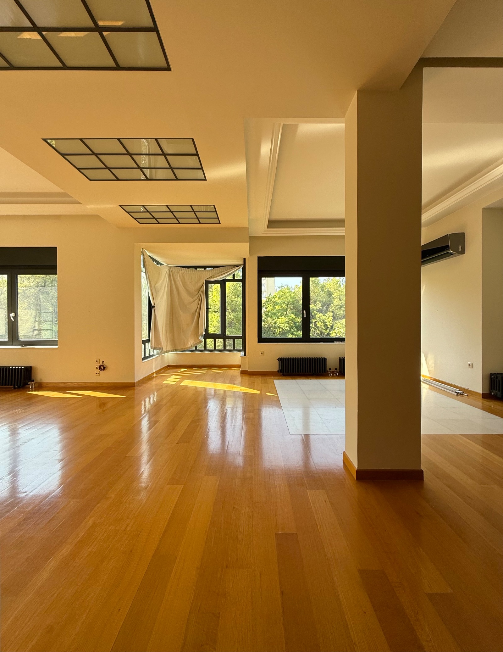 This 115 sqm floor flat is idealy located facing an unobstructed natural landcape topped by the Ymittos mountain. Set in a late 1960's family building on the elevated 1st floor the property has been fully redesigned around 2010 to optimize this outstanding view.