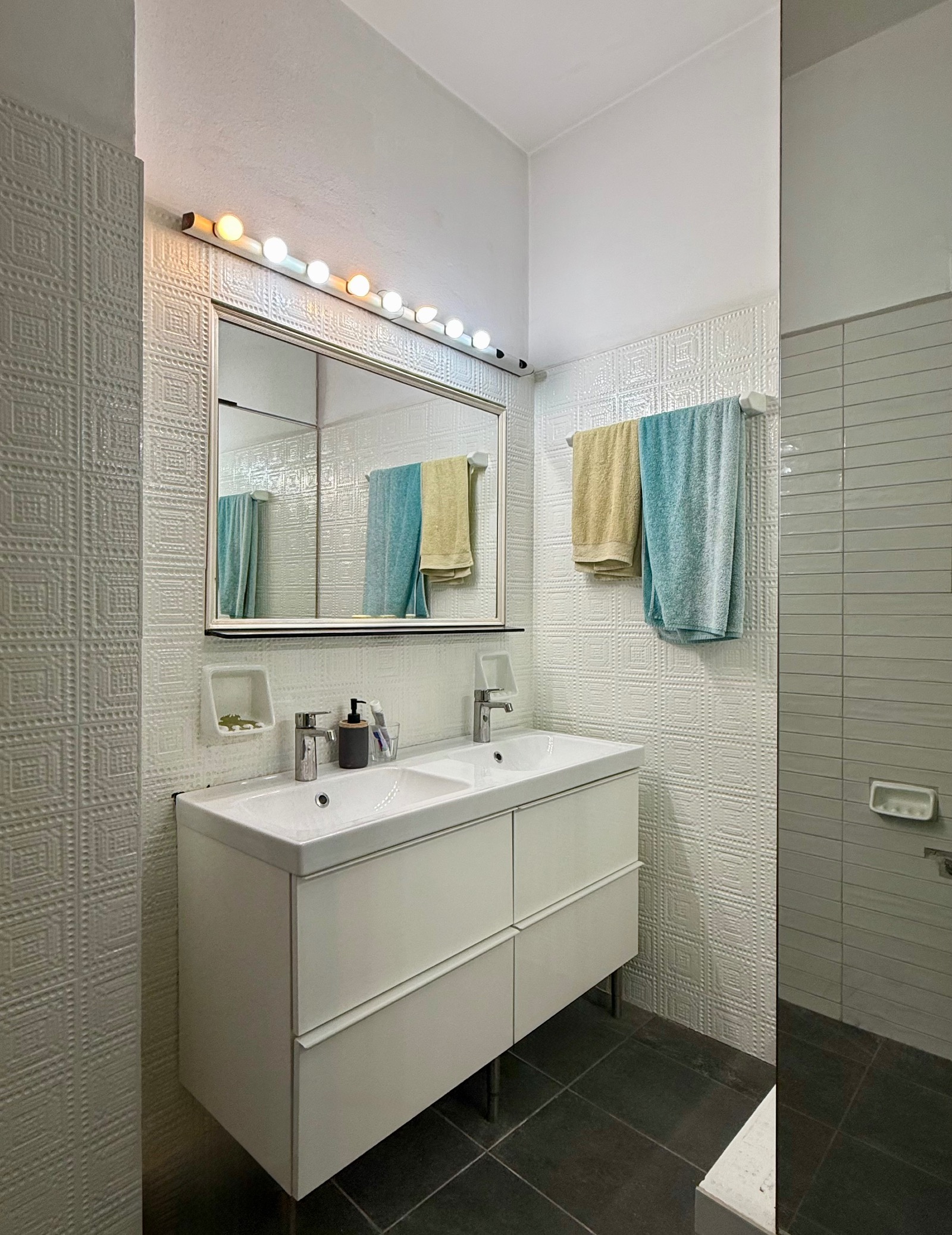 Η είσοδος του διαμερίσματος βρίσκεται στον δεύτερο όροφο, εκεί όπου βρίσκεται το ένα υπνοδωμάτιο και ένα WC όπως επίσης μία ξύλινη σκάλα που οδηγεί στον τρίτο όροφο.