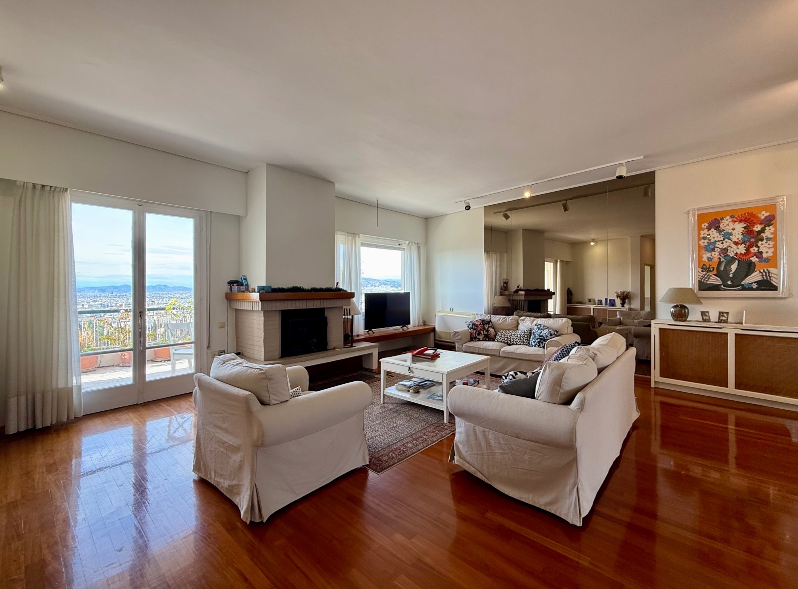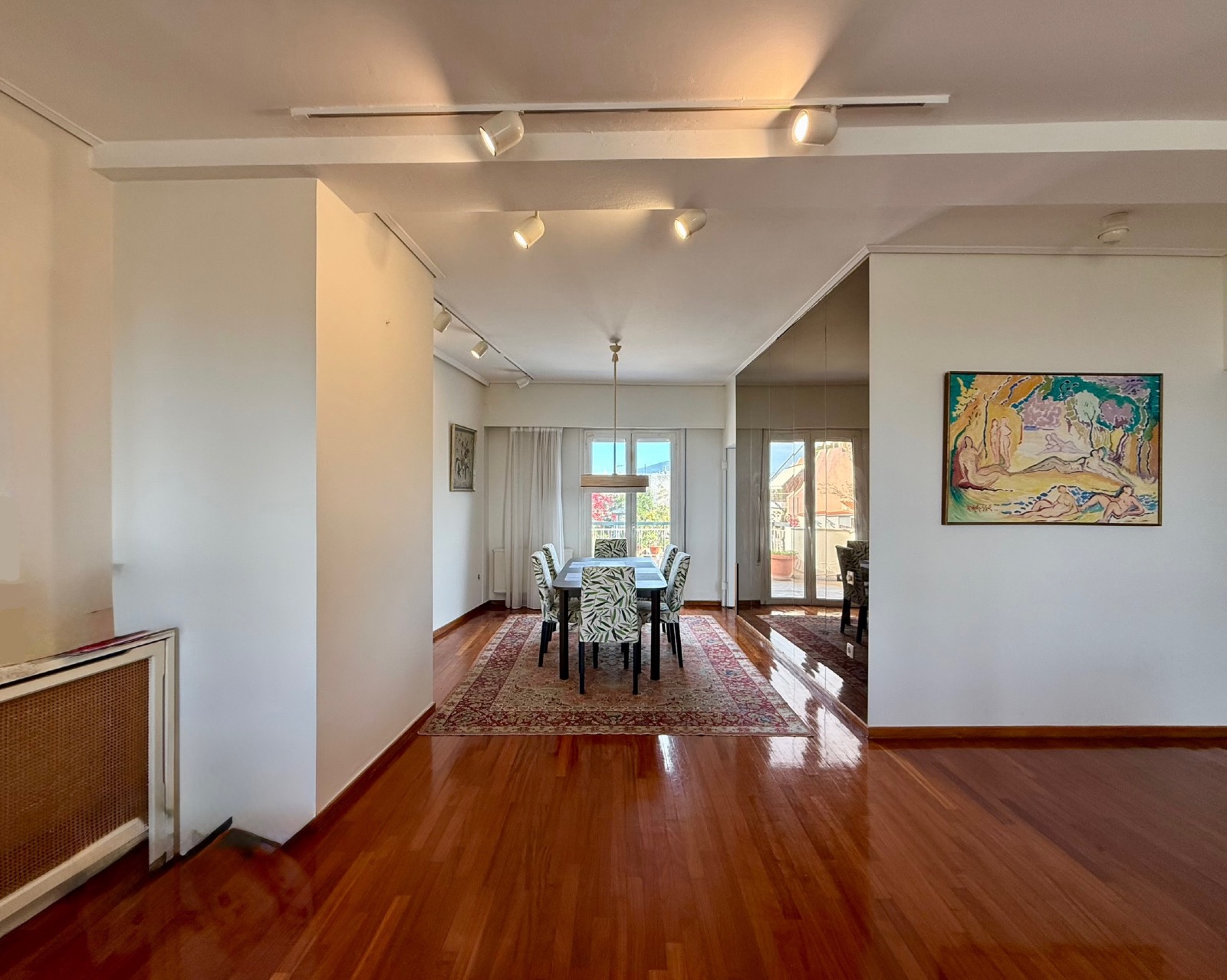 Στον τρίτο όροφο βρίσκεται ένας μεγάλος χώρος που περιλαμβάνει καθιστικό με τζάκι και τραπεζαρία, δύο υπνοδωμάτια, κουζίνα, μπάνιο και μία βεράντα με ανεμπόδιστη θέα προς την θάλασσα με την θέα της Ακρόπολης να δεσπόζει. Το διαμέρισμα διαθέτει αυτόνομη θέρμανση φυσικού αερίου και κλιματισμό.