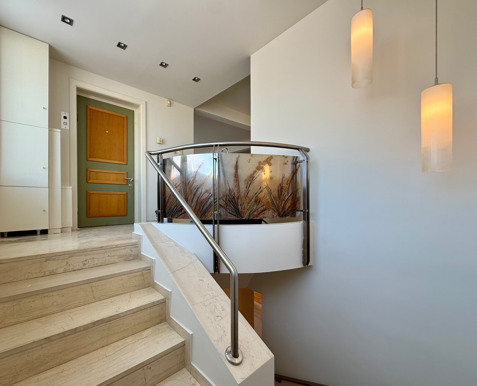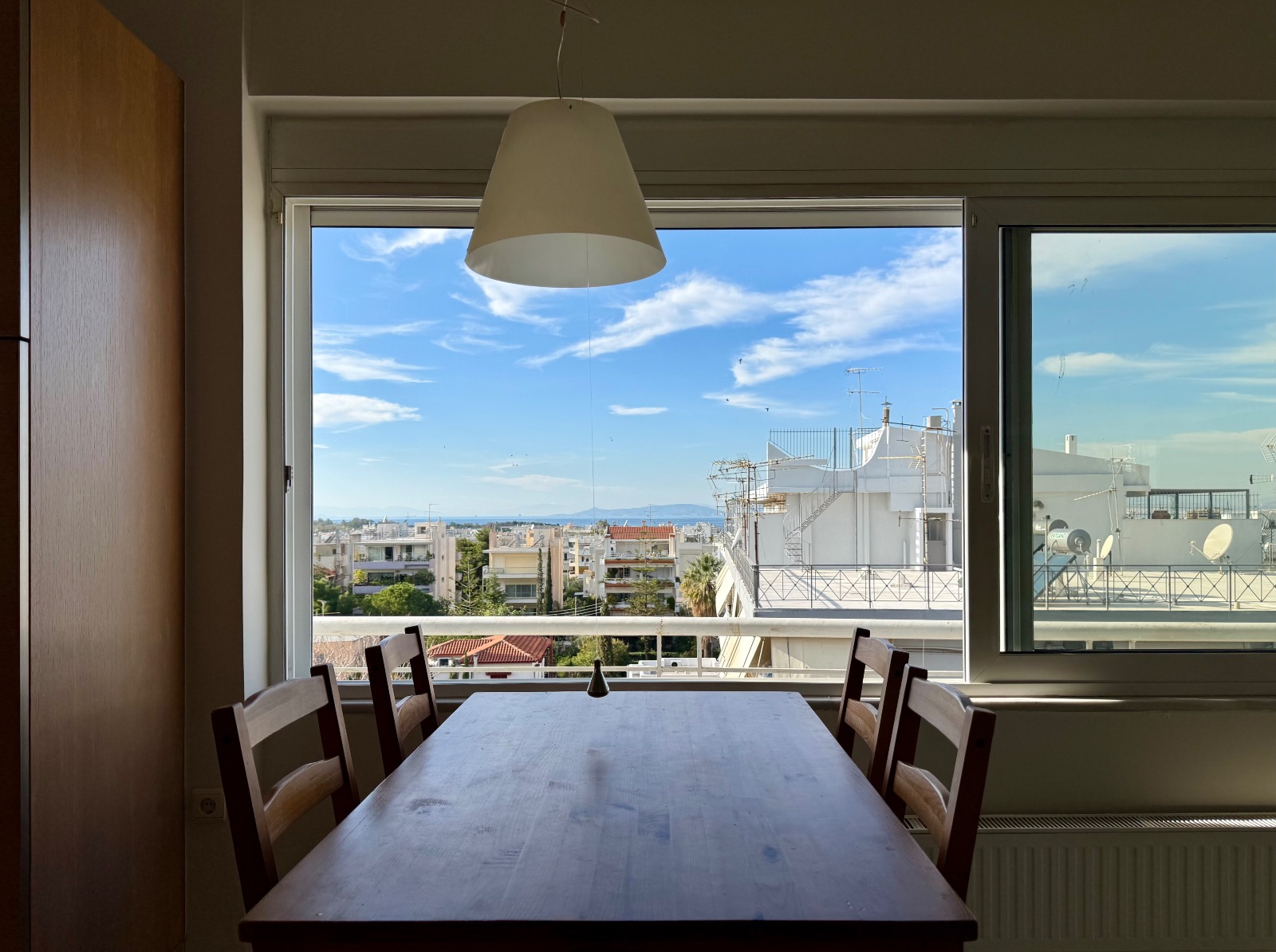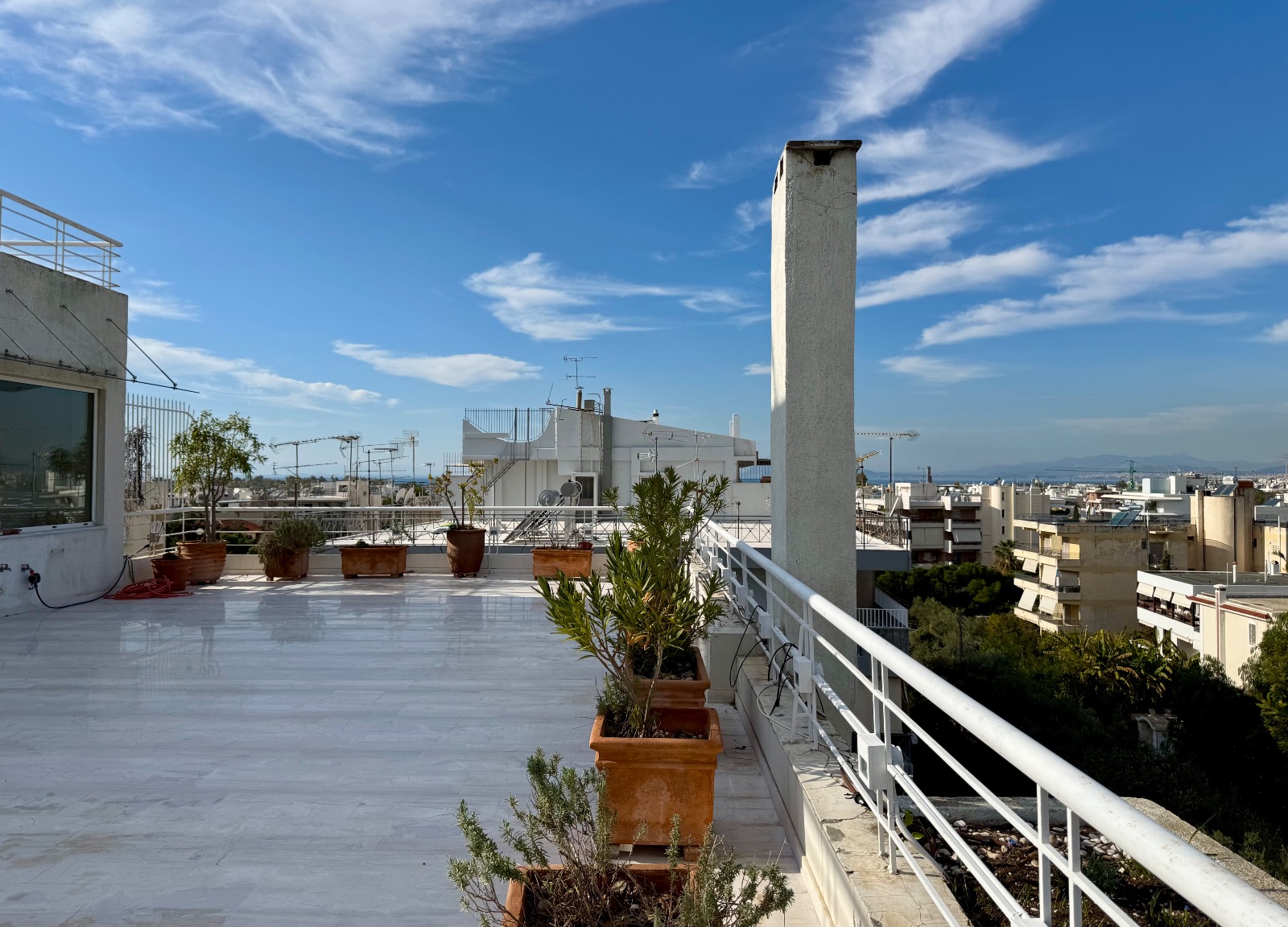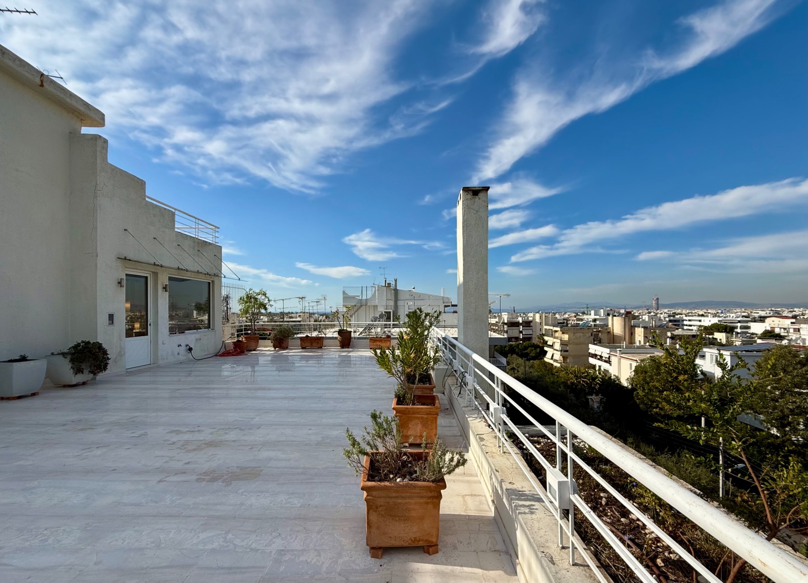 Το αξιοσημείωτο εδω ειναι οτι υπαρχει αμεση προσβαση σε ιδιοκτητη ταρατσα-βεραντα, η οποια ειναι παρα πολυ φαρδια, με διακοσμητικες ζαρντινιερες και μια θεα στην θαλασσα αλλα και στο πρασινο της περιοχης, η οποια ειναι κυριολεκτικα αφοπλιστικη. Οι πορτες ειναι ασφαλειας, το συστημα συναγερμου ειναι ενεργο, η θερμανση ειναι αυτονομη με πετρελαιο αλλα υπαρχει αναμονη για φυσικο αεριο και λειτουργει επιπροσθέτως κεντρικη μοναδα κλιματισμου για ψυξη και θερμανση. Τελος τρεις θεσεις σταθμευσης σε πυλωτη, ηλιακος θερμοσιφωνας και θυροτηλεοραση.