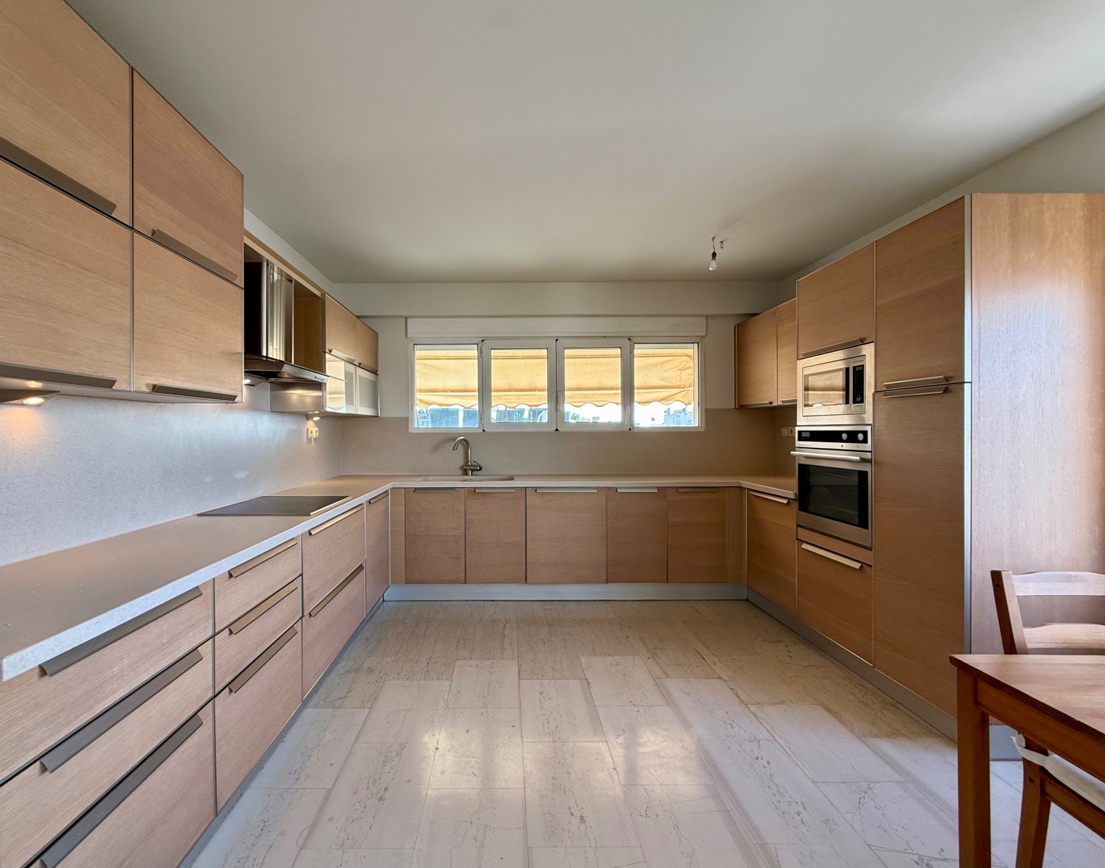 Στην Γλυφαδα, μια προσεγμενη μεζονετα-ρετιρε, με απολαυστικη θεα στην θαλασσα και στο βουνο, βρισκεται προς ενοικιαση. Ειναι πληρως ανακαινισμενη προσφατα. Ξεκινωντας απο τον τριτο οροφο συνανταμε τρια μεγαλα υπνοδωματια, το ενα εκ των οποιων ειναι το κυριως, με συνεχομενο εξοπλισμενο μπανιο εσωτερικα. Τα αλλα δυο υπνοδωματια μοιραζονται ενα εξοπλισμενο μπανιο με μπανιερα-τζακουζι και ντουζιέρα. Τα πατωματα ειναι παντου ξυλινα εξαιρετικης ποιοτητος και οι πορτες επισης. Επισης υπαρχει και ενα μικρο κουζινακι. Η βεραντα ειναι πολυ φαρδια με τεντες ηλεκτροκινητες, διπλα παραθυρα με σιτες και θεα στο πρασινο της περιοχης. Ανεβαινοντας στον πανω οροφο- ρετιρε, με την χρηση εσωτερικης μαρμαρινης σκαλας βλεπουμε ενα φωτεινο υπερυψωμενο σαλονι, με τζακι, τον χωρο της τραπεζαριας που ειναι πολυ φωτεινος και ευρυχωρος και μια μοντερνα εξοπλισμενη κουζινα, ανοιχτη στον χωρο, με φαρδυ παραθυρο που βλεπει στην θαλασσα. Οι παγκοι ειναι φτιαγμενοι απο υλικο corian και υπαρχει κεραμικη εστια, φουρνος, απορροφητηρας και φουρνος μικροκυματων. Τα πατωματα ειναι ξύλινα και μαρμαρινα. και προσβαση σε πολυ φαρδια βεραντα με θεα στο πρασινο της περιοχης. Τα τζαμια πολλα, διπλα, με σίτες και τα ρολα ηλεκτροκινητα. Το πατωμα παντου απο ξυλο εξαιρετικης ποιοτητας. Υπαρχει επιπλεον και ενα πολυ μοντερνο μπανιο ξενων.