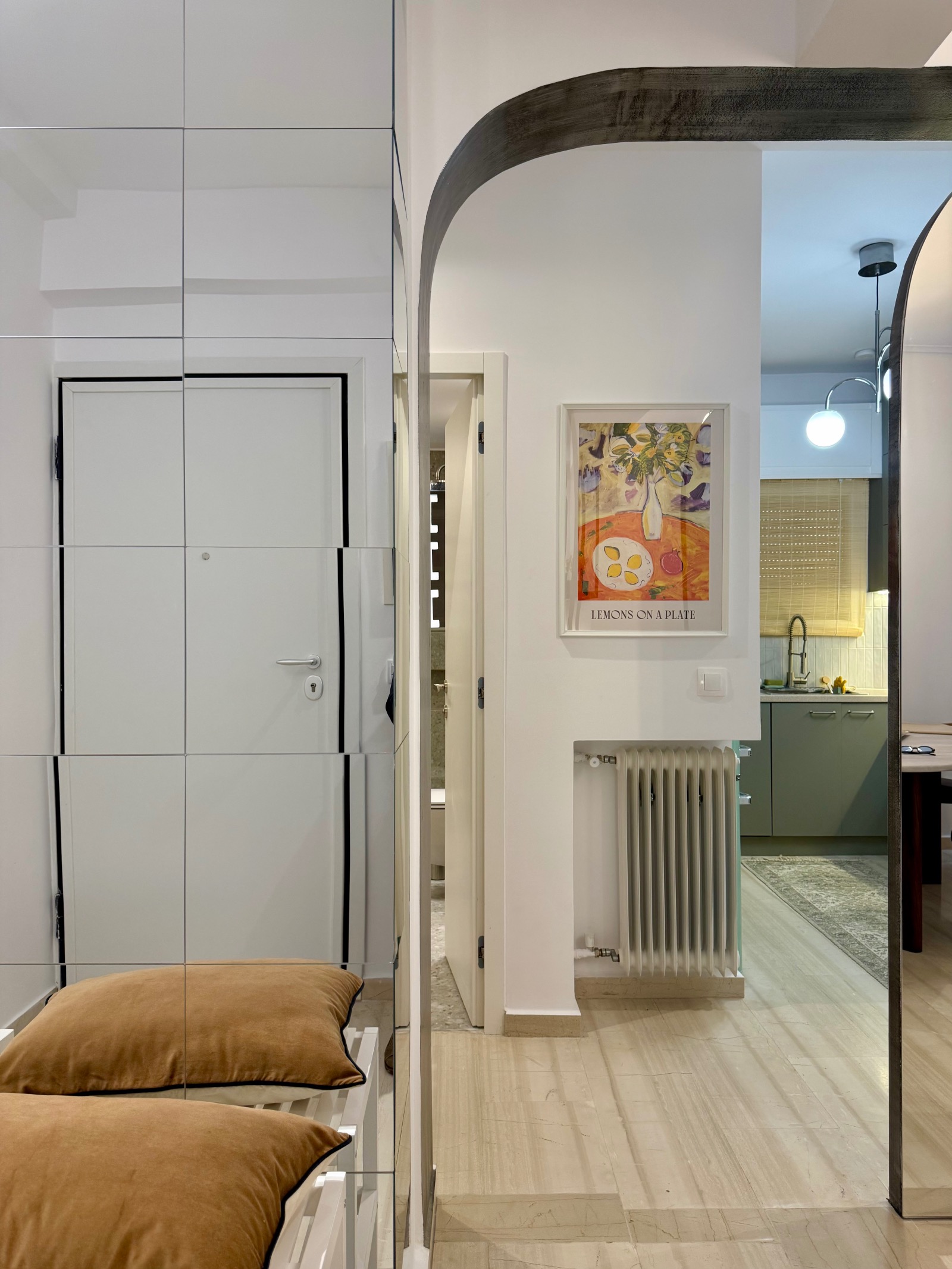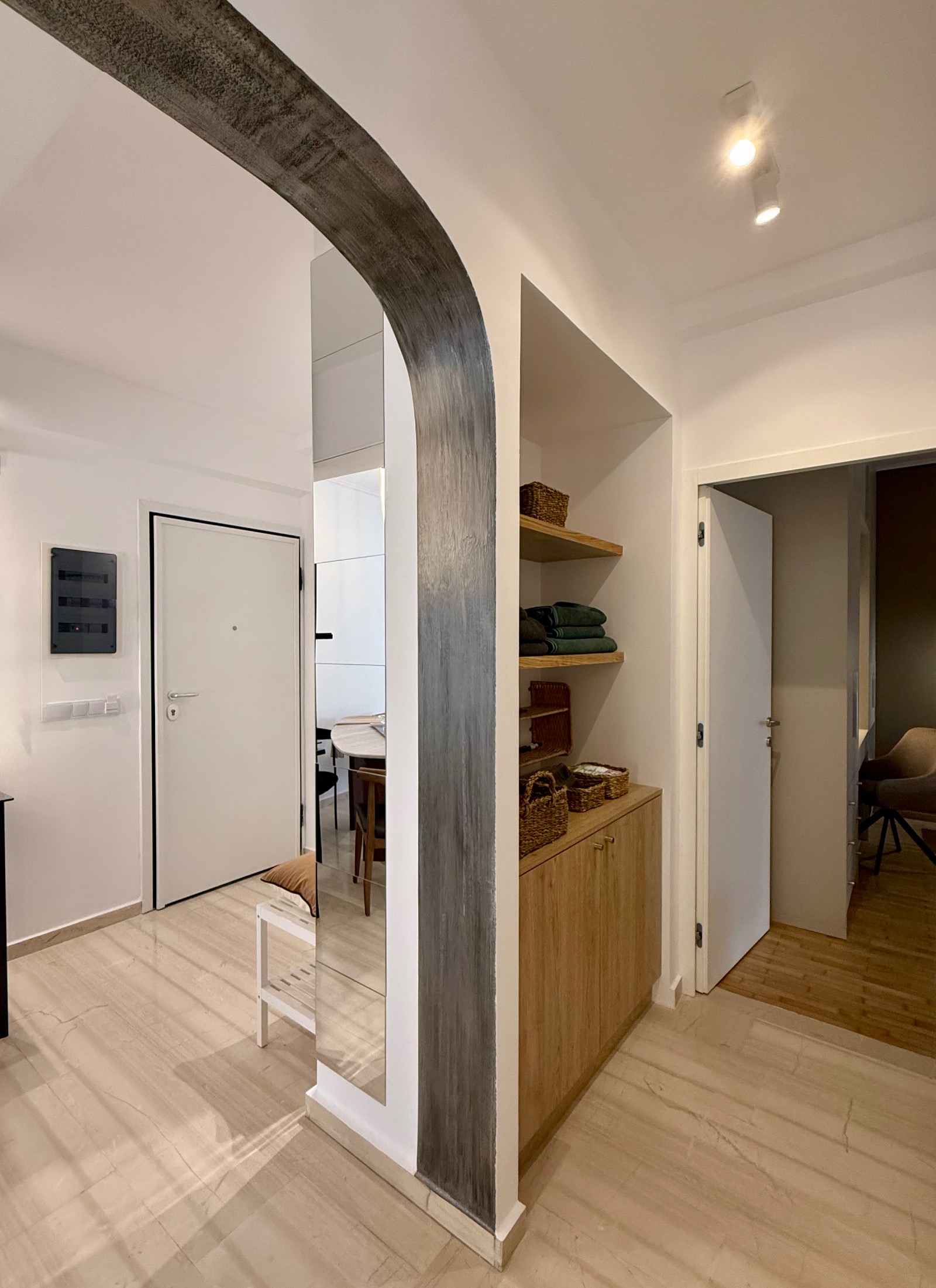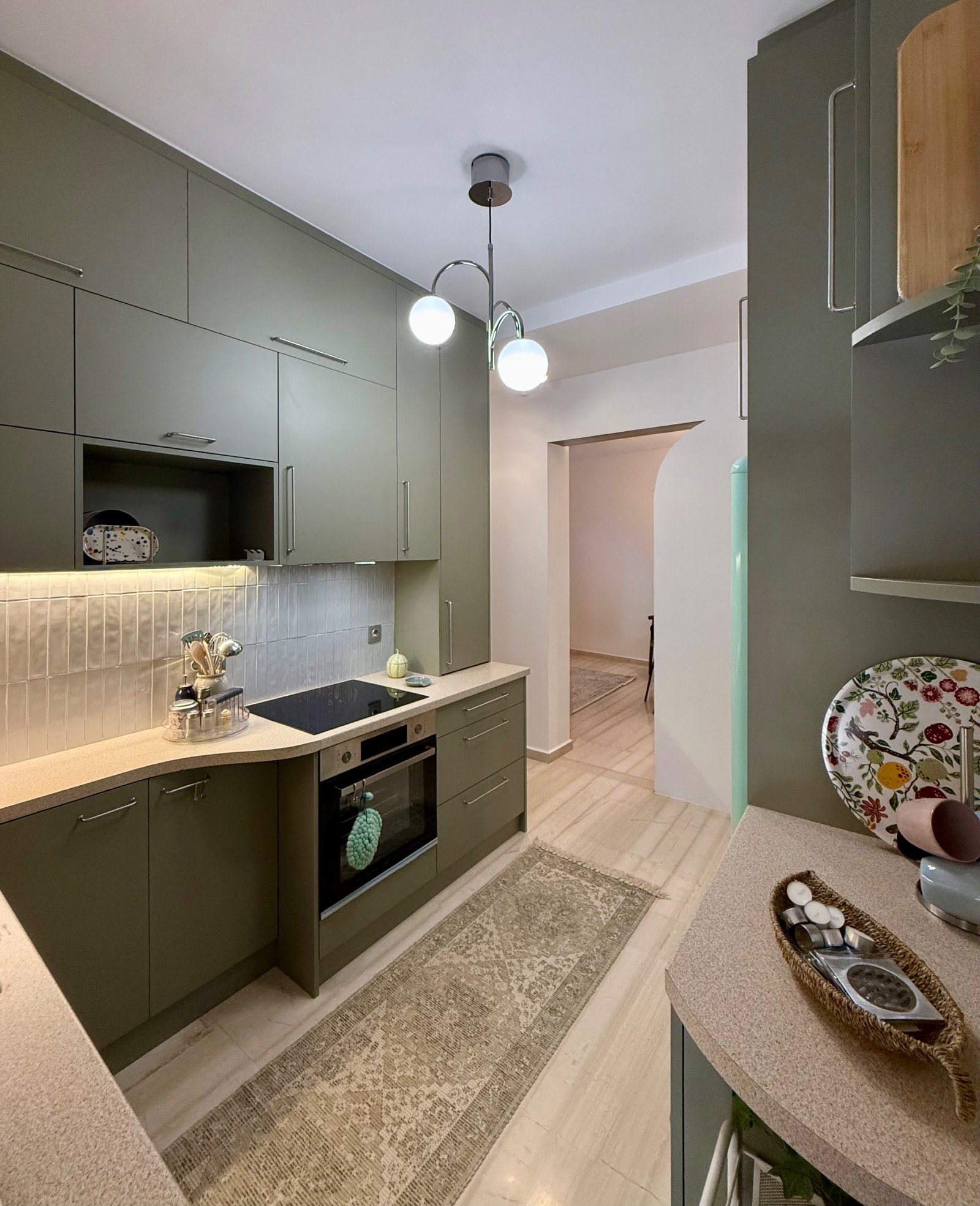 Το διαμερισμα ειναι επιμελως διακοσμημενο, με μοντερνο και προσεγμενο τροπο και διαθετει τα παντα σε σχεση με την κατοικηση του. Ειναι εξ ολοκληρου ανακαινισμενο το 2025. Αποτελειται απο ενα φωτεινο σαλονι και τραπεζαρια που οδηγει σε περιμετρικο μπαλκονιμε εντυπωσιακη θεα στην θαλασσα. Η κουζινα η οποια ειναι πληρως εξοπλισμενη με ολοκαινουριες ηλεκτρικες συσκευες (ψυγειο, εστια, φουρνος, πλυντηριο πιατων και ρουχων, μηχανη espresso, σιδερο, σιδερωστρα, ηλεκτρικη σκουπα, κτλ) και οικιακα ειδη κουζινας. Στην συνεχεια δυο υπνοδωματια εφοδιασμενα με ειδη λευκα ειδη και ενα μοντερνο μπανιο με ντουζιερα.