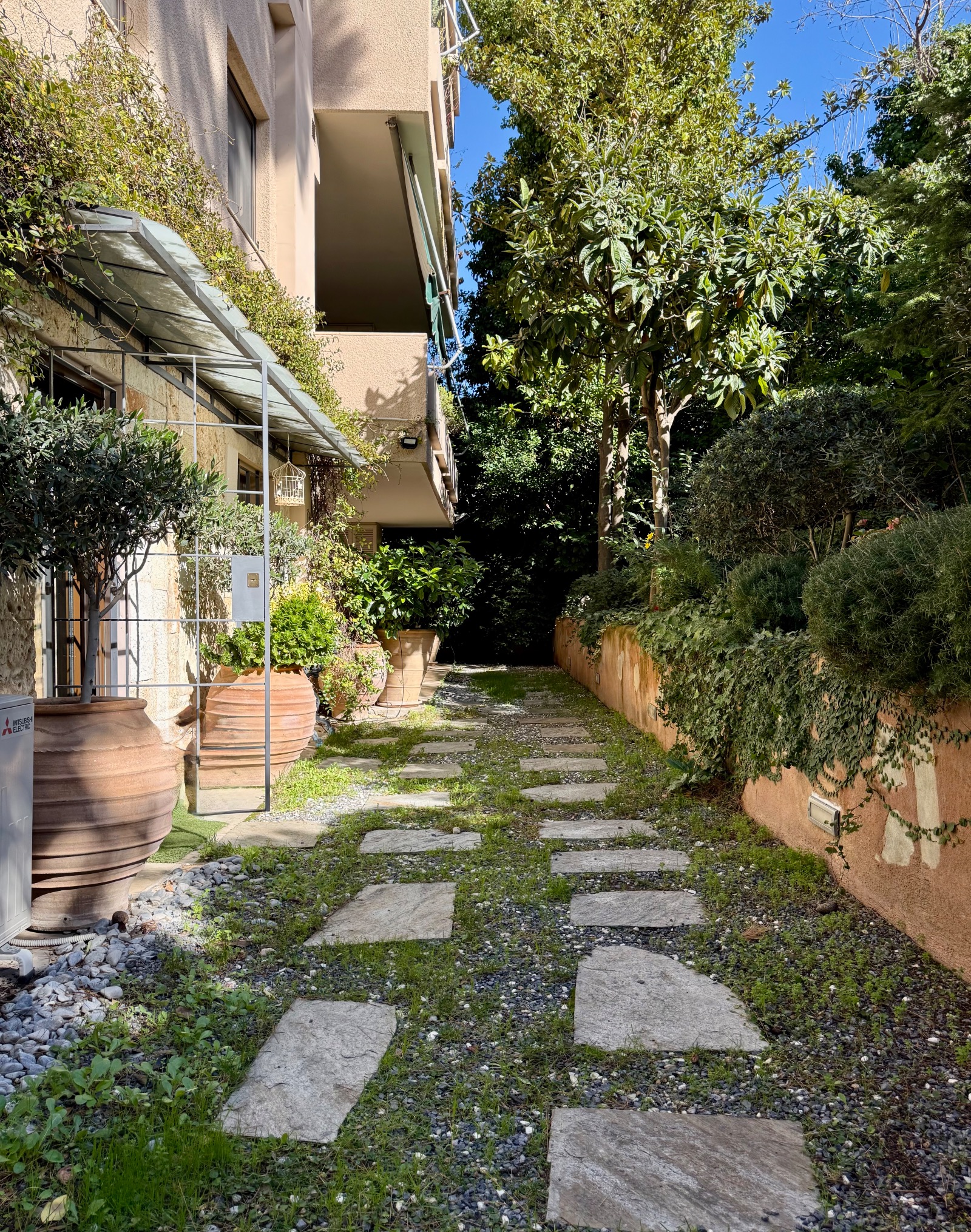 This 276 m2 property with its own garden is located in a quiet neighborhood in Filothei. It consists of two levels, groundfloor and first floor with internal staircase, a small independent studio is also attached for auxiliary use (guests, maid, etc...)