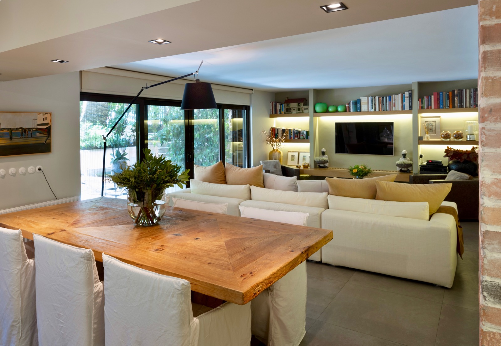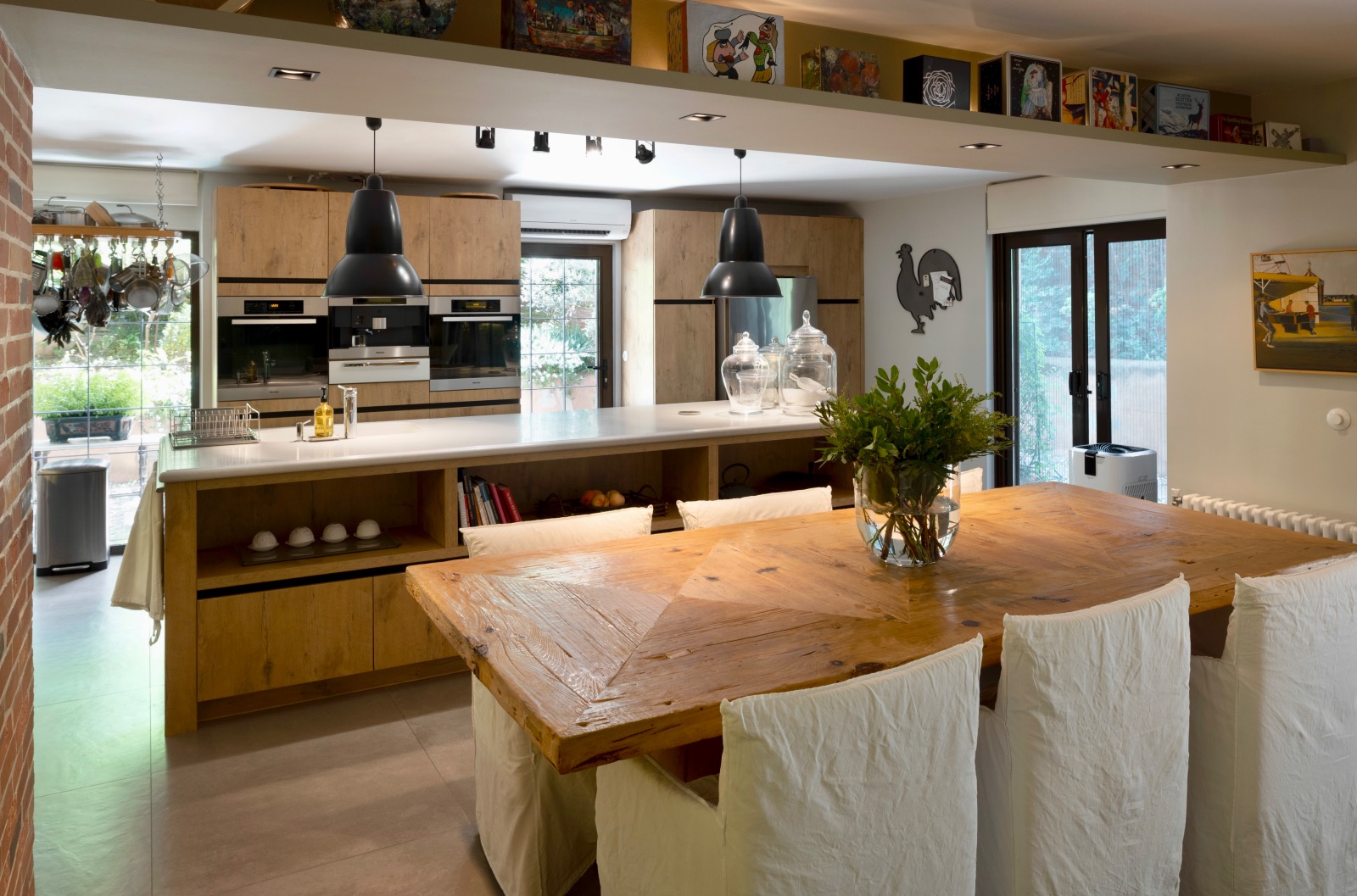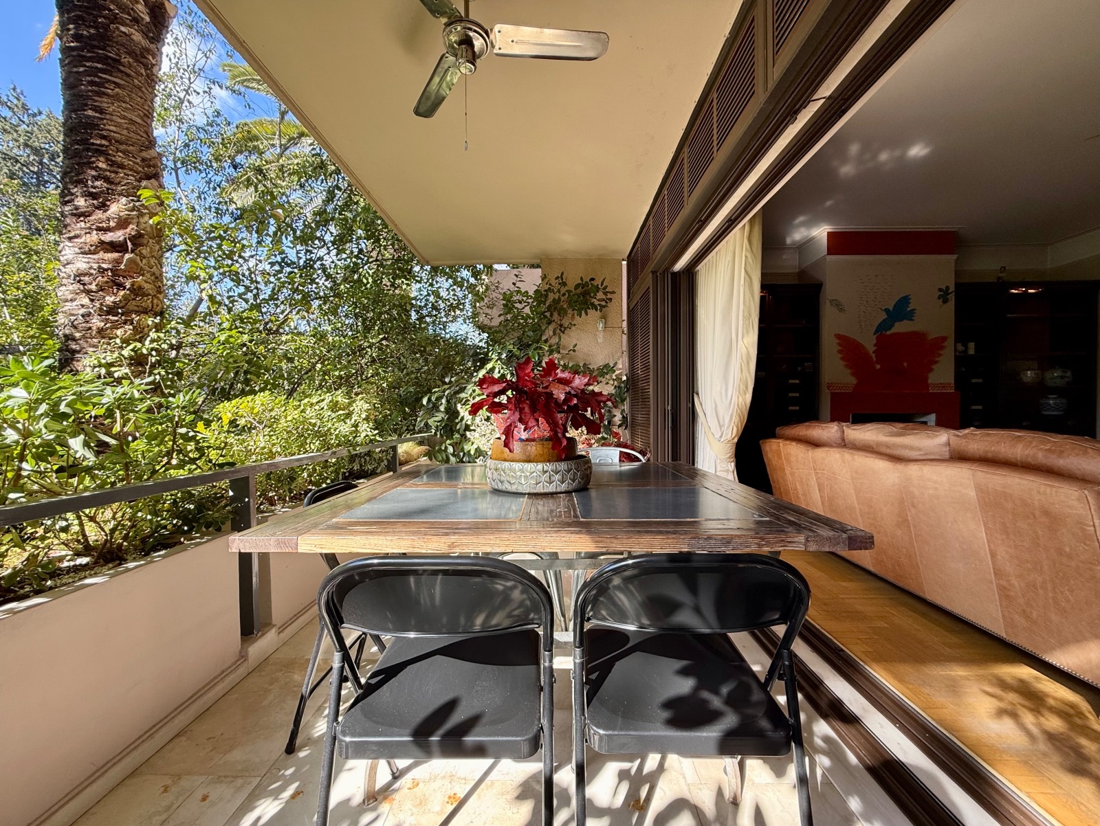 The first floor presents two bedrooms, one bathroom and one guests' WC, a large living area and a dining next to the kitchen and two large balconies. This floor has been renovated in the early 1990's. The groundfloor has been redesigned more recently, round 2010, and has an extended fusionned living-dining-kitchen area which enjoys many openings to the lush surrounding garden. One bedroom and a bathroom completes the lay-out. Each floor has a fire place.