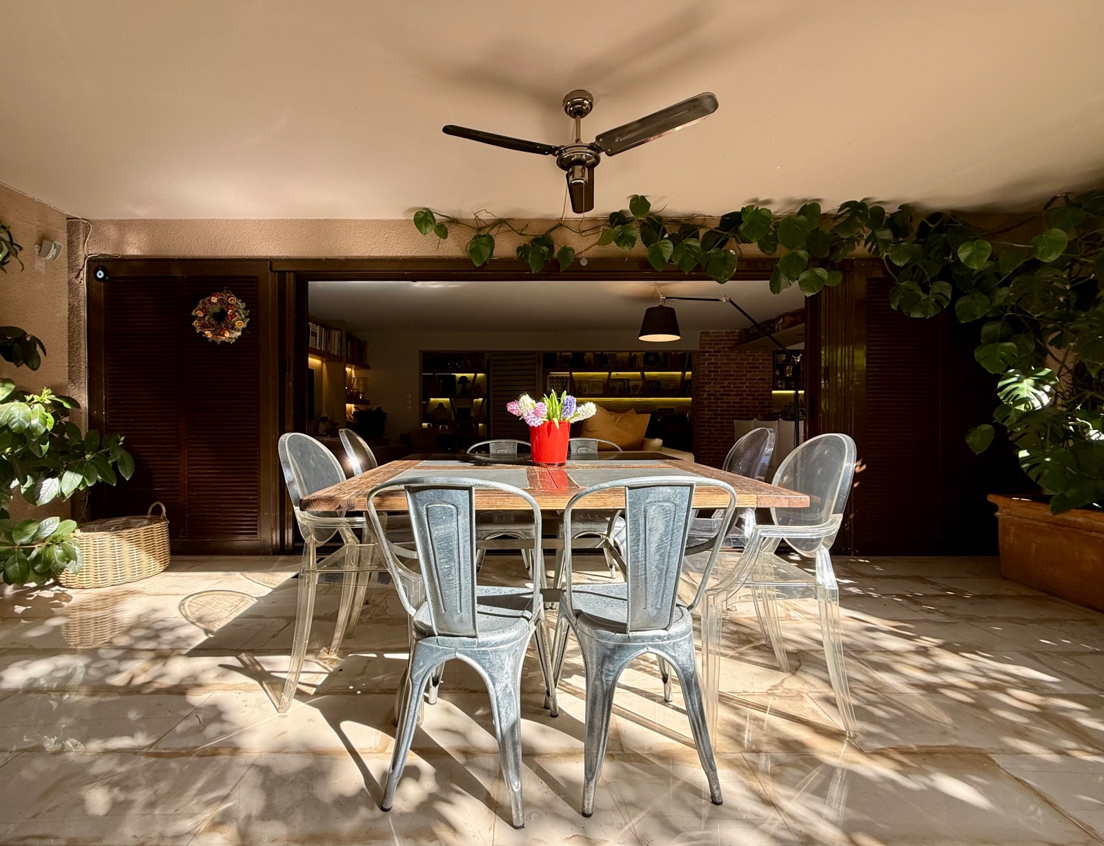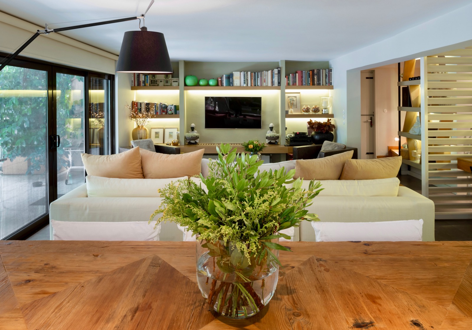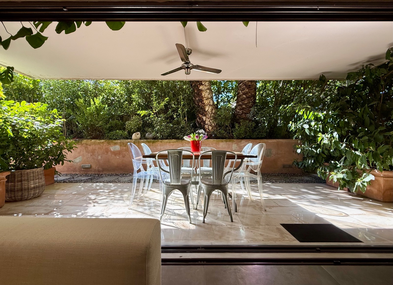 The first floor presents two bedrooms, one bathroom and one guests' WC, a large living area and a dining next to the kitchen and two large balconies. This floor has been renovated in the early 1990's. The groundfloor has been redesigned more recently, round 2010, and has an extended fusionned living-dining-kitchen area which enjoys many openings to the lush surrounding garden. One bedroom and a bathroom completes the lay-out. Each floor has a fire place.