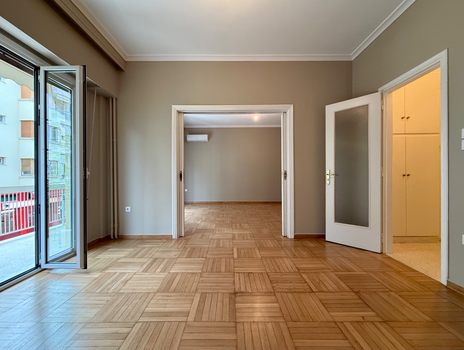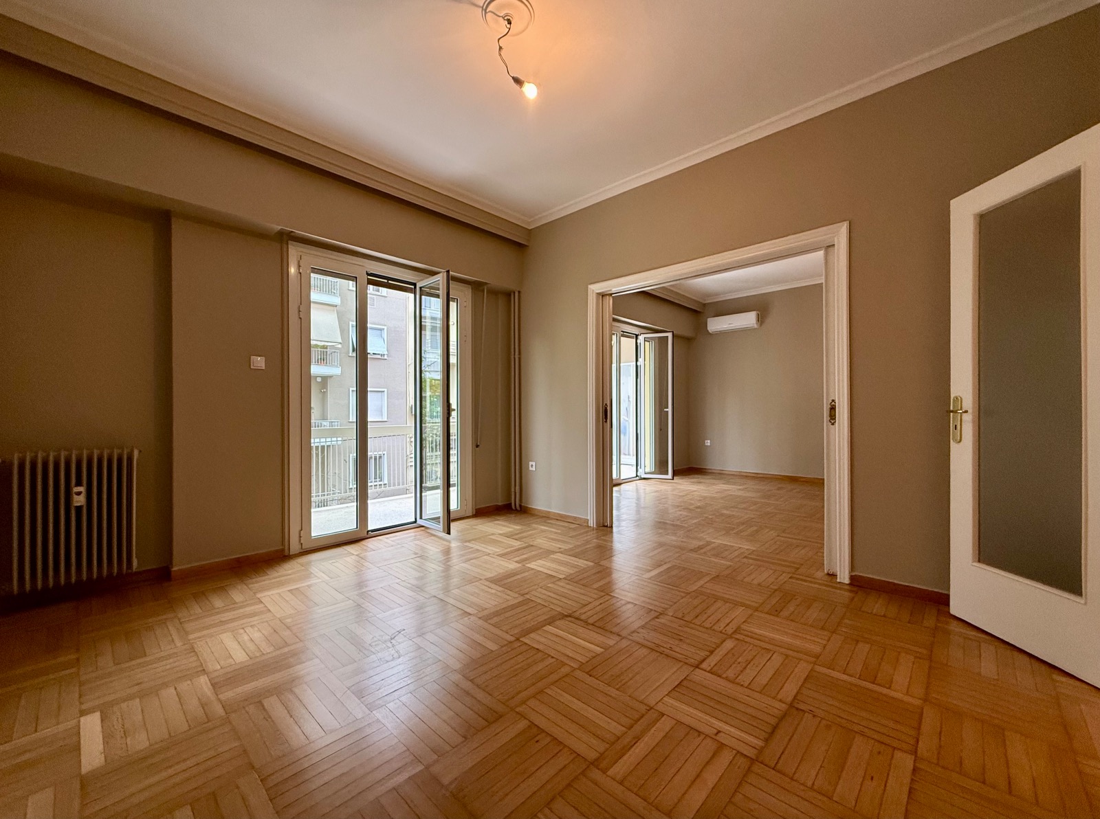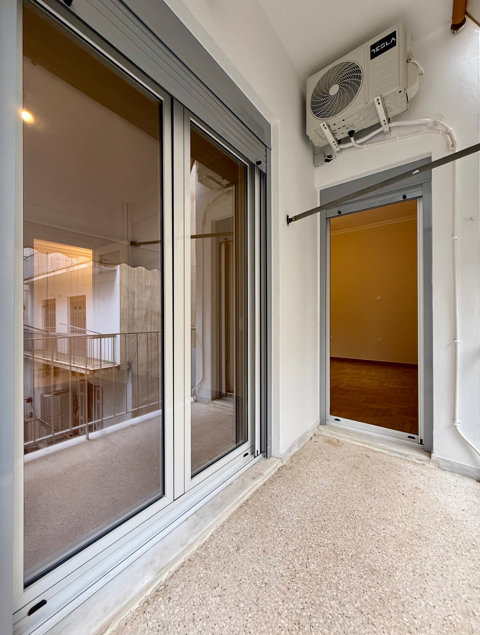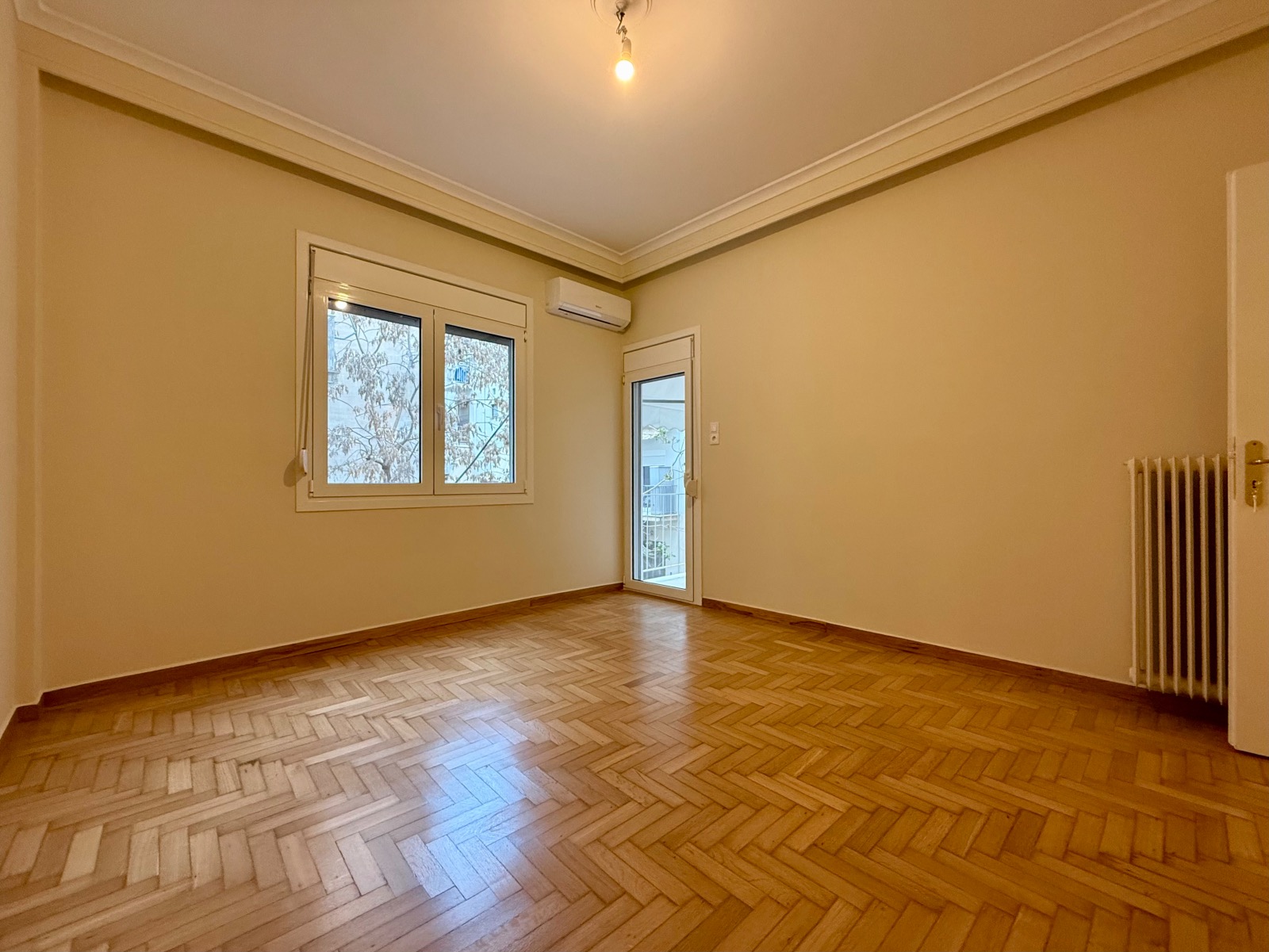 The wooden floors are in outstanding condition, the walls have also been freshly painted. All the windows are double-glazed. There are also three air-condition units and the heating system is independent with natural gas.