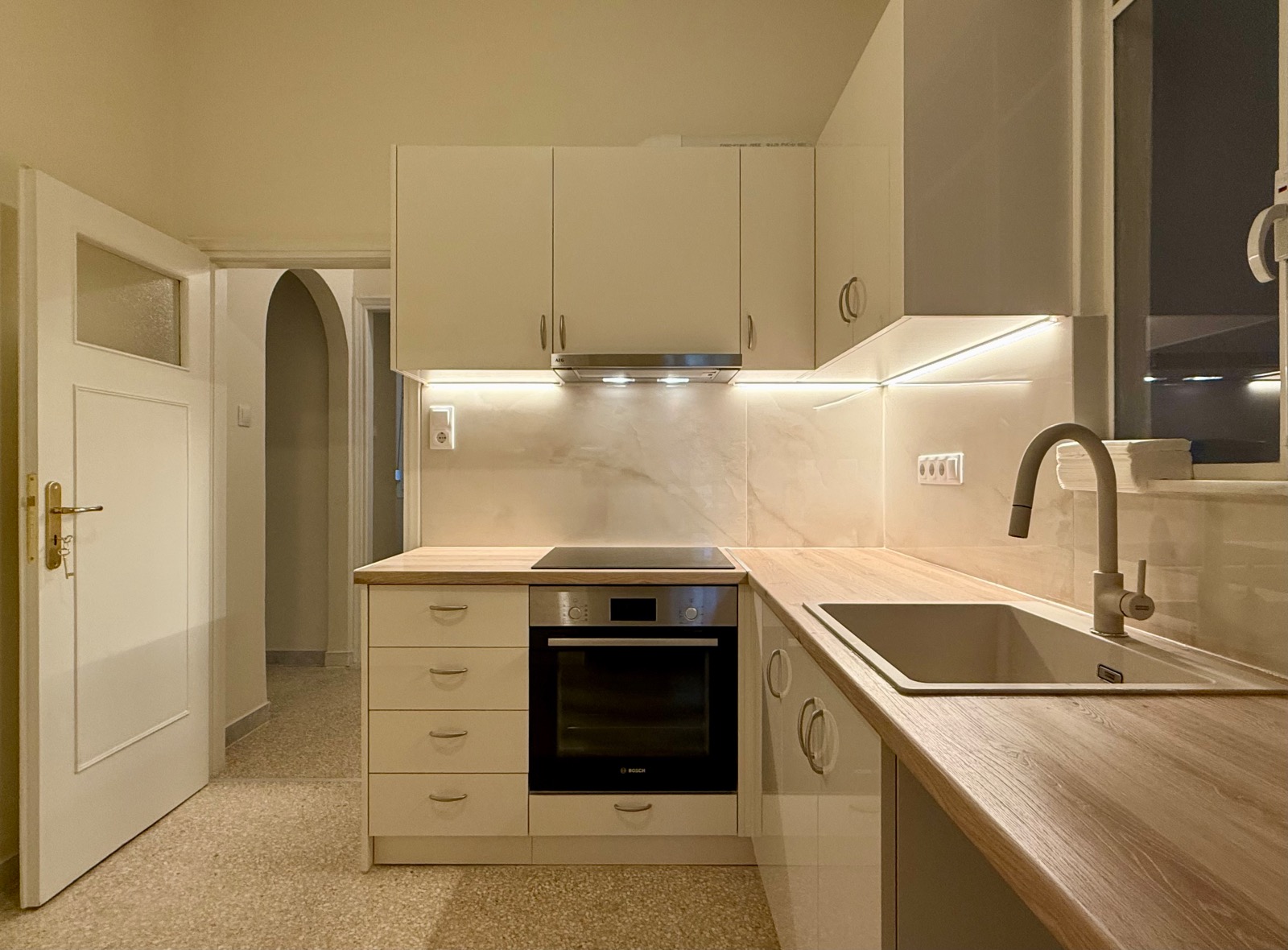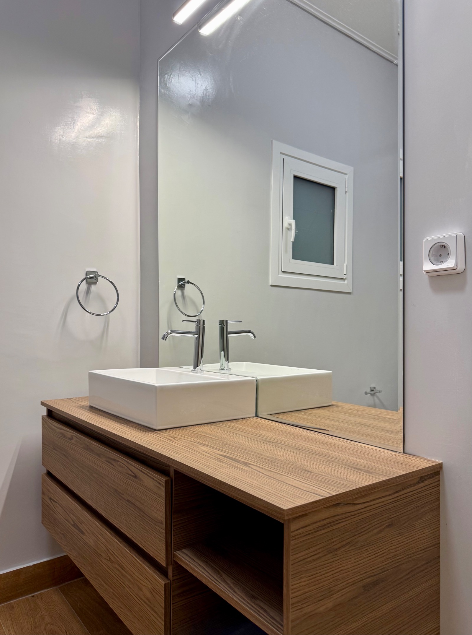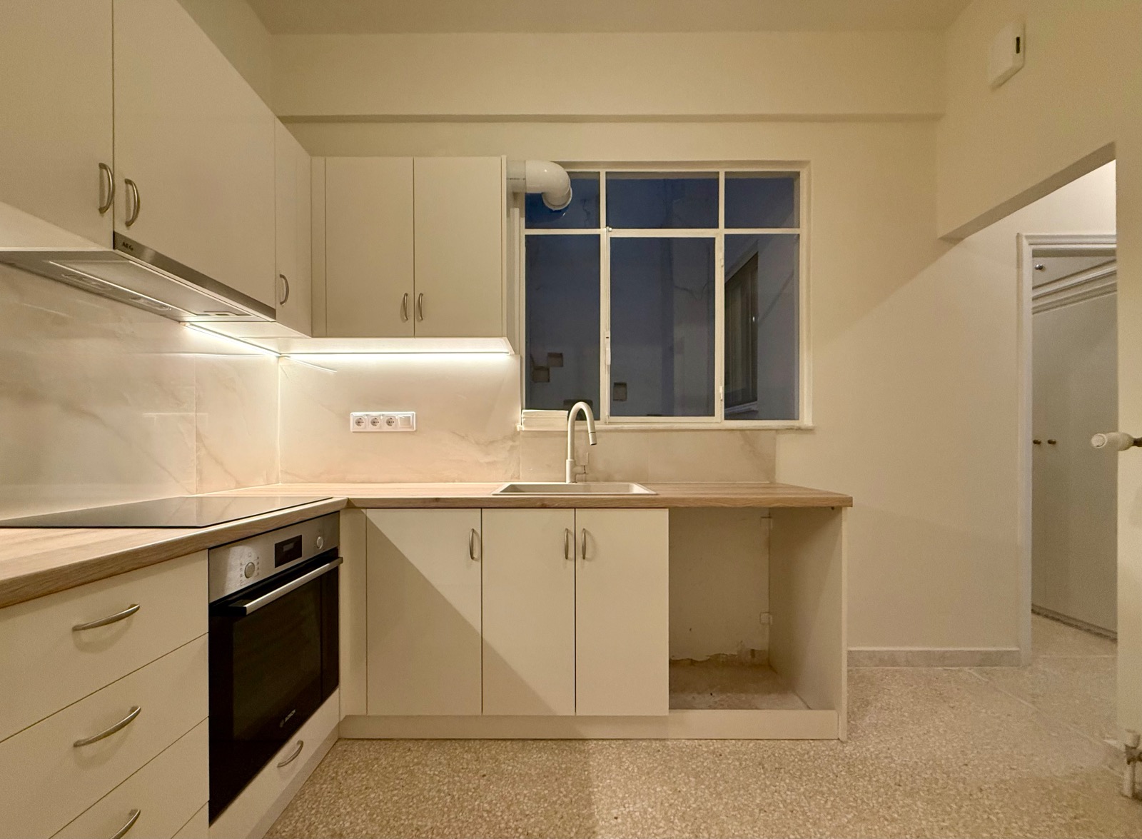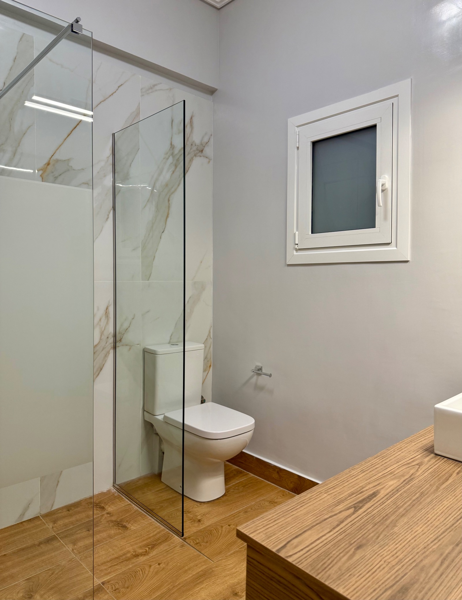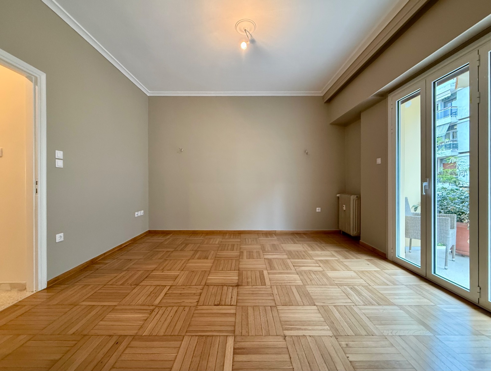 The wooden floors are in outstanding condition, the walls have also been freshly painted. All the windows are double-glazed. There are also three air-condition units and the heating system is independent with natural gas.
